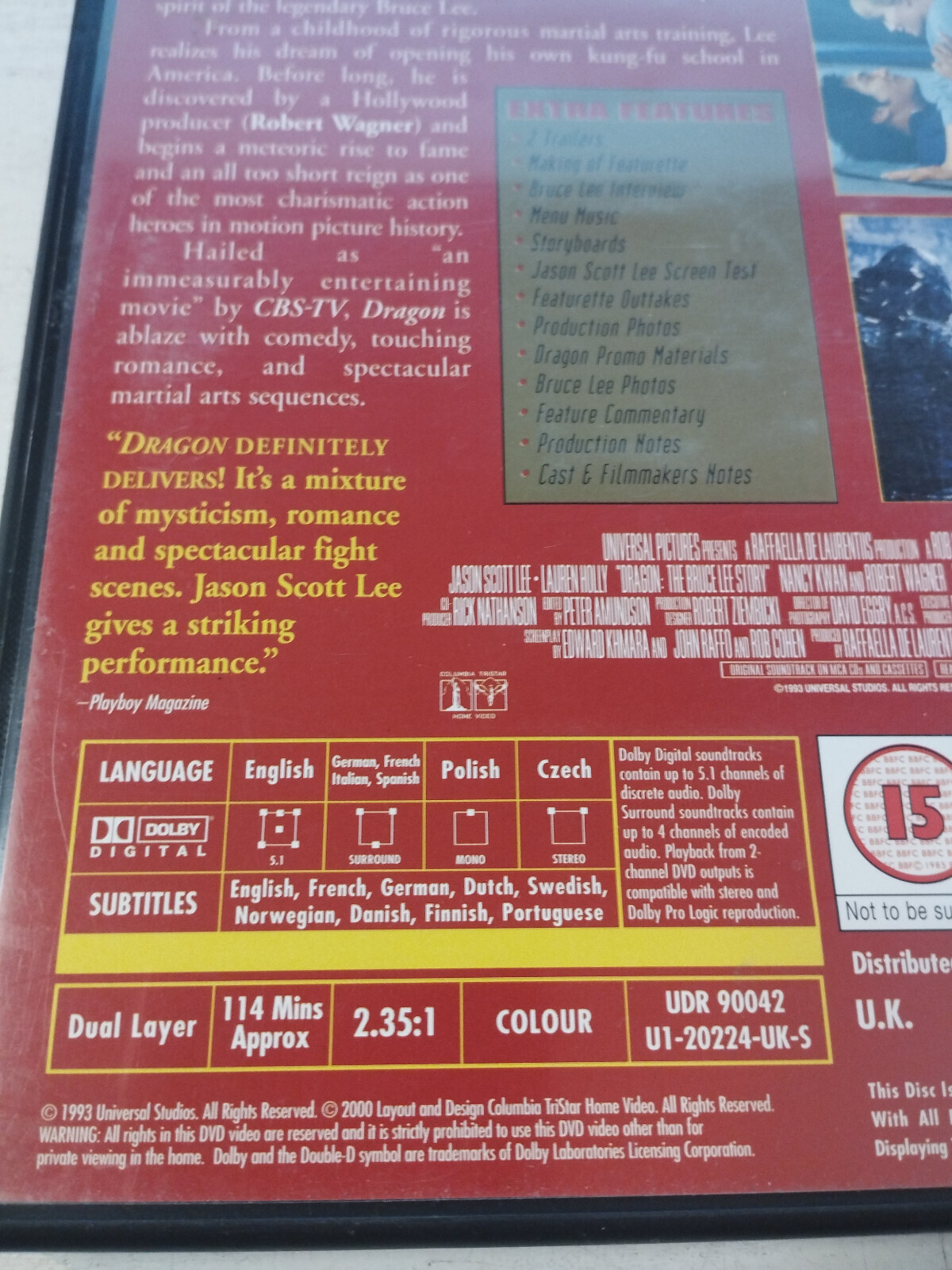 Dragon The Bruce Lee Story Rob Cohen - DVD + Extras Region anglaise espagnole 2 AM