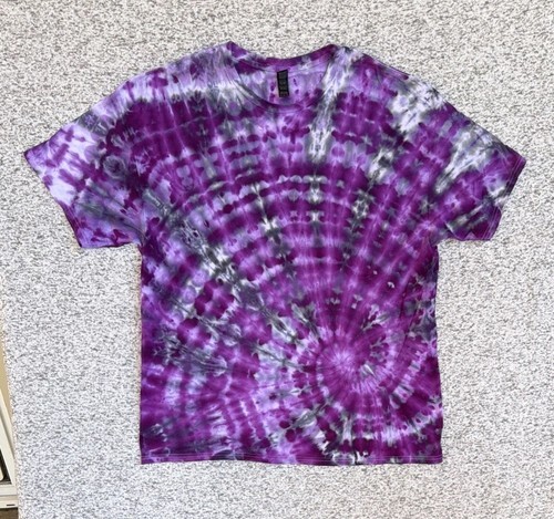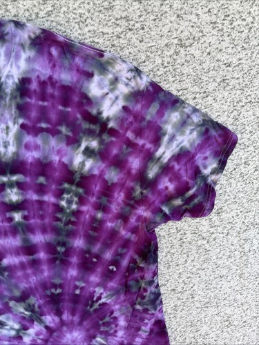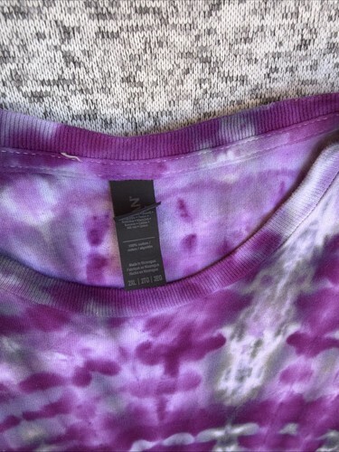 NEW Gildan Womens Purple Gray White Spiral Ice Tie Dye Short Sleeve Shirt 2XL