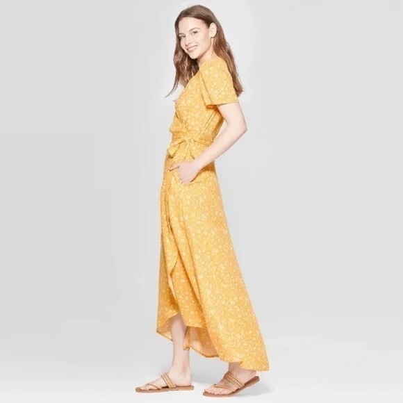 Universal Thread Yellow & White Floral Hi Low Wrap Dress Size XS Long Maxi Dress