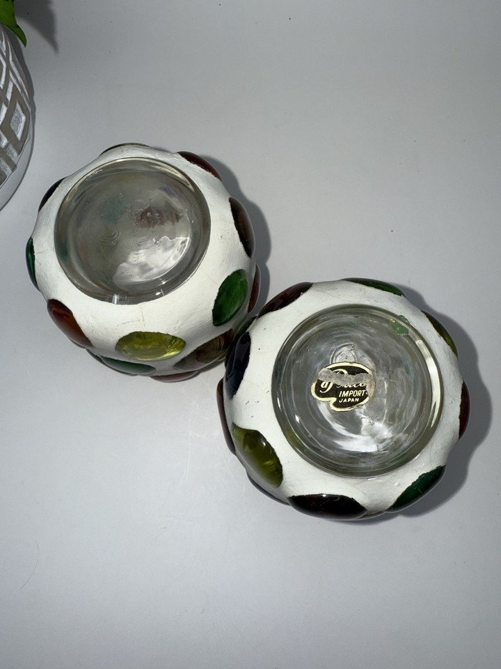 Marked Pilgrim Import Japan on the base, these 1960s treasures blend whimsical color with timeless mod design ? perfect for a vintage bar cart, boho shelf, or as cheery votives for your next dinner party.