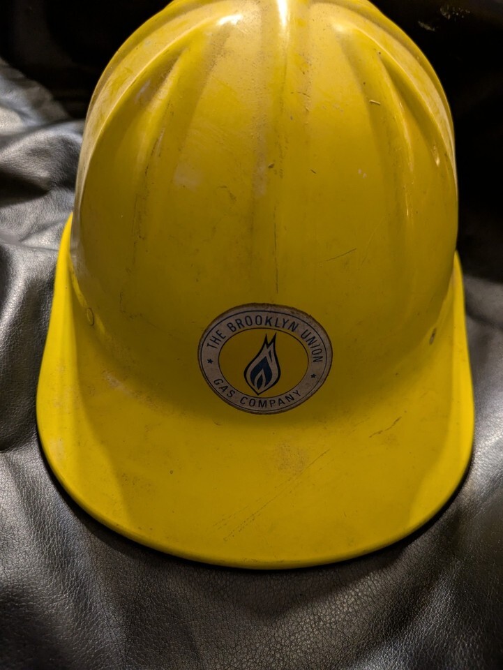 Vintage Brooklyn Union Gas Co Yellow Metal Hard Hat- show original title Ori...