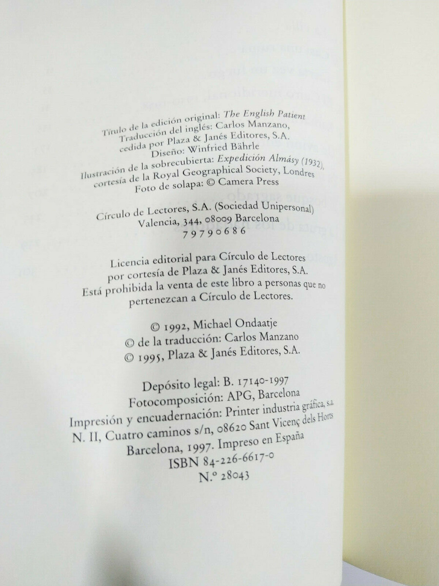 EL PACIENTE Anglais MICHAEL Ondaatje Book Hard Cover DE Circle