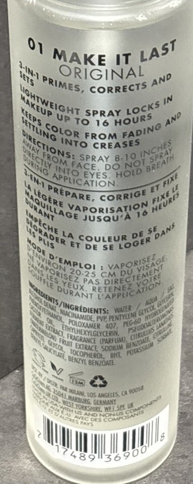 2 Milani Make It Last Original Natural Finish Setting Spray 6 oz