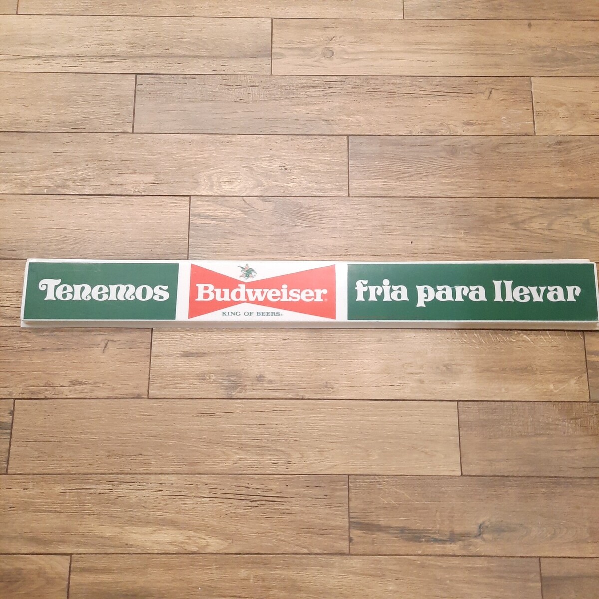 TENEMOS BUDWEISER FRIA PARA LLEVAR plastic advertising sign from light Spanish