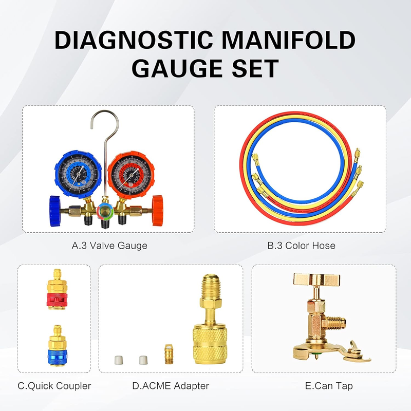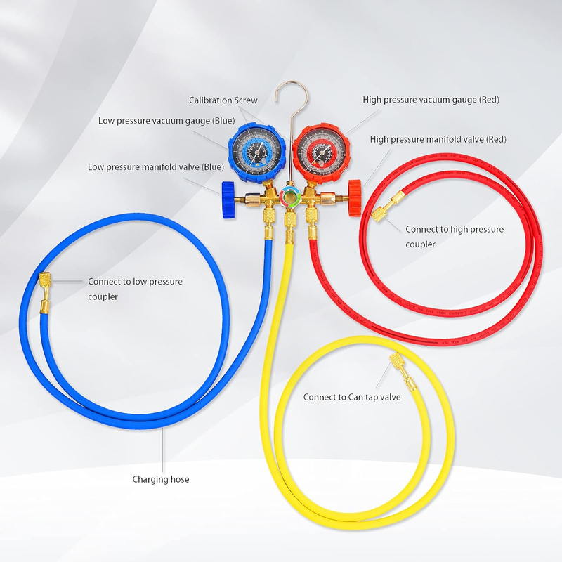 Multi-functional Manifold Gauge: Our manifold gauge is designed to measure the pressure of the equipment accurately and repair air conditioning systems. The oversized sight glass is easy for clear reading. The good-quality gauge improves the reading accuracy largely. It is ideal for R12, R22, R134A, R502
