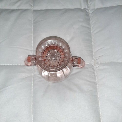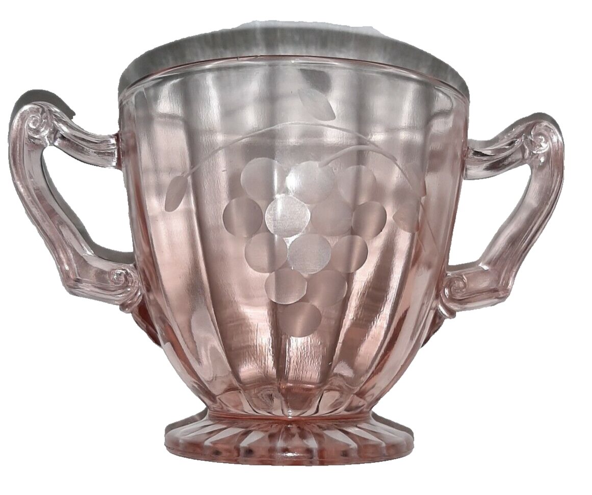Vintage Clear pink etched Glass 50s 60s Sugar Bowl Grapes 2 Handles