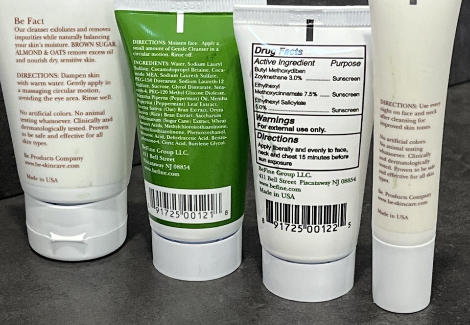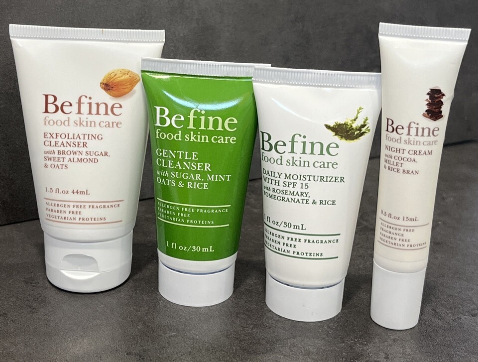 Befine 4pc Exfoliating Cleanser 1.5 oz, Gentle Cleanser 1 oz, Daily Moisturizer SPF 15 1 oz, Night Cream 0.5 oz Travel Size