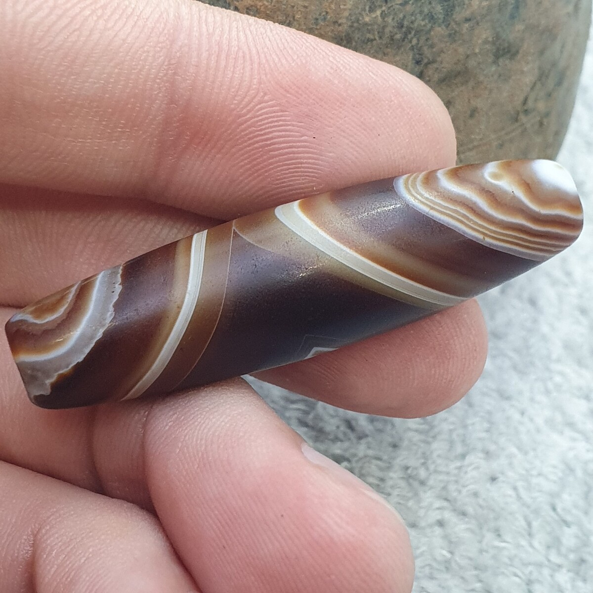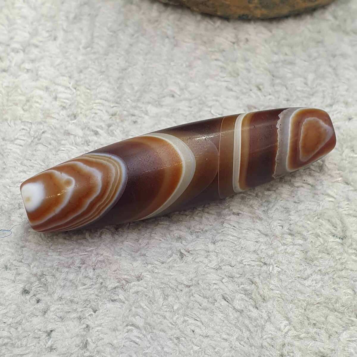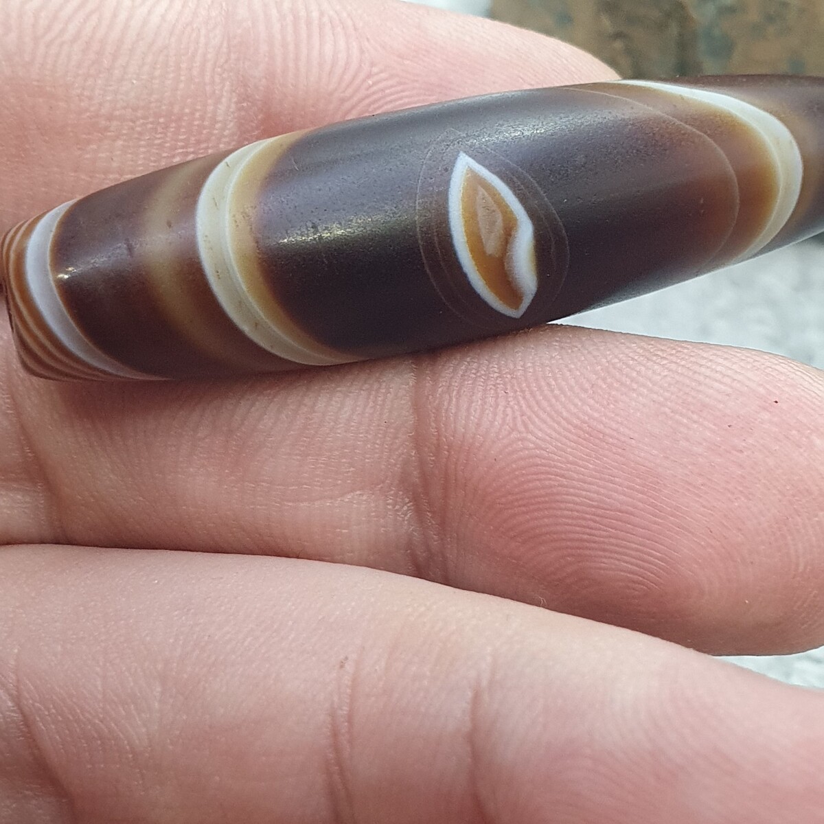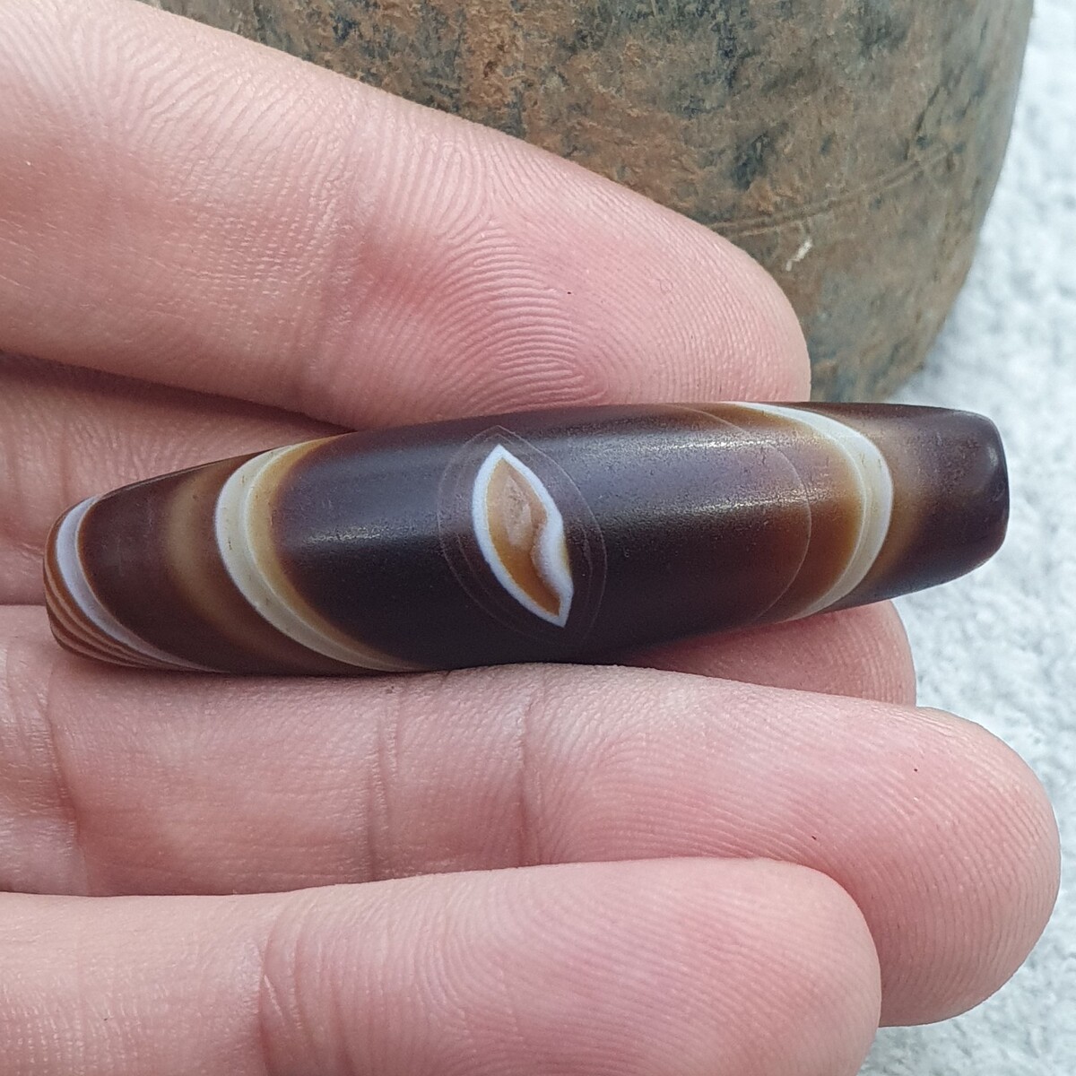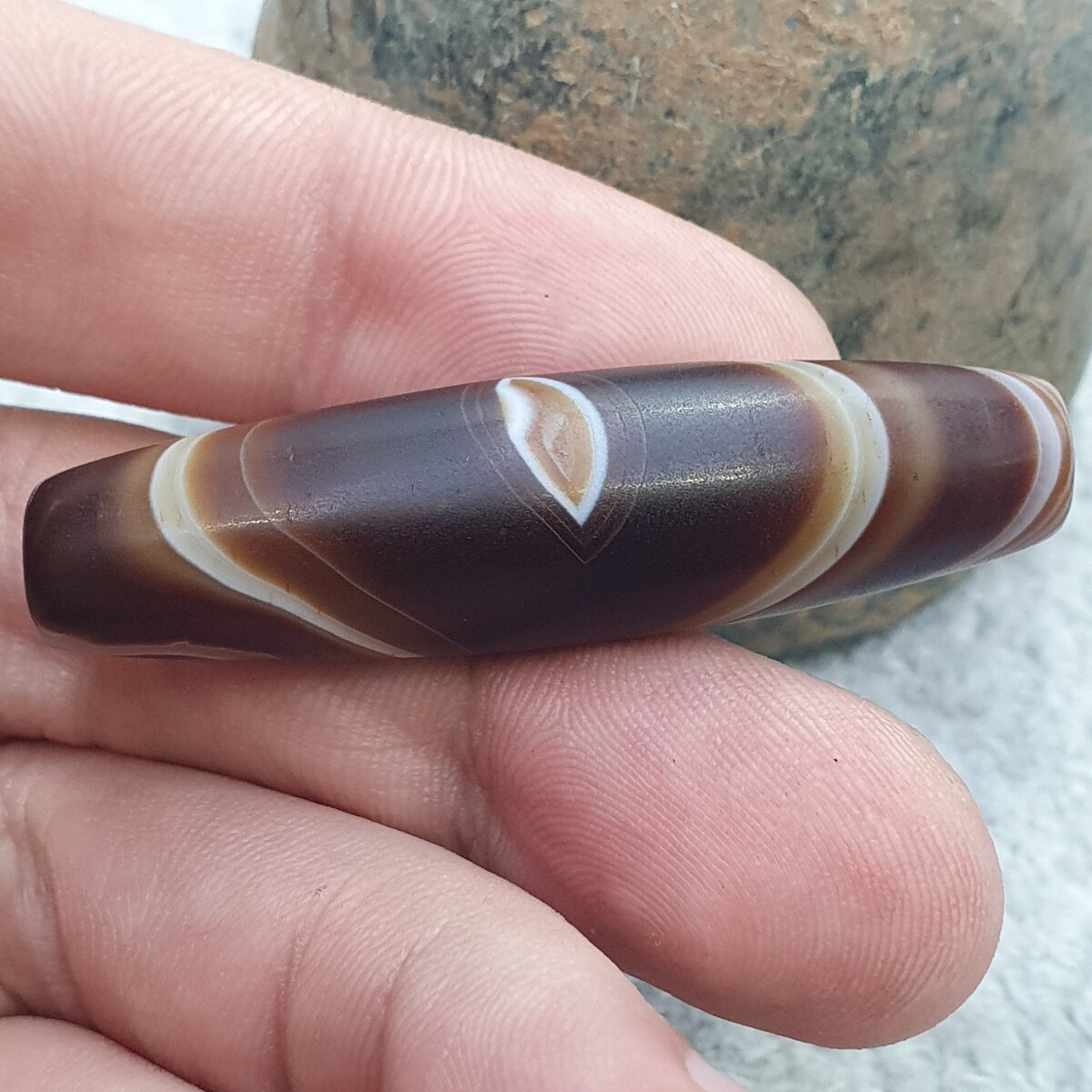 Unique Himalayan Tibetan Agate bead Suleimany Eye & Lines Pattern Agate Amulet