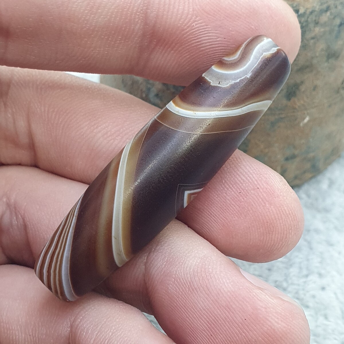 Himalayan Indo Tibetan rare Patterns pure Natural Eyes Banded Agate Amulet, Bead Pendant