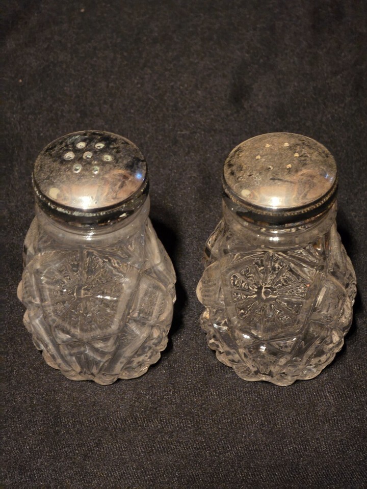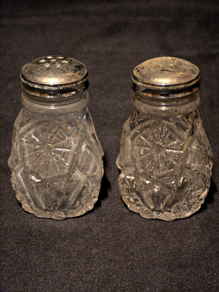 Vintage Imperial Glass Mogul Pattern Salt & Pepper Shaker Set With Metal Lids