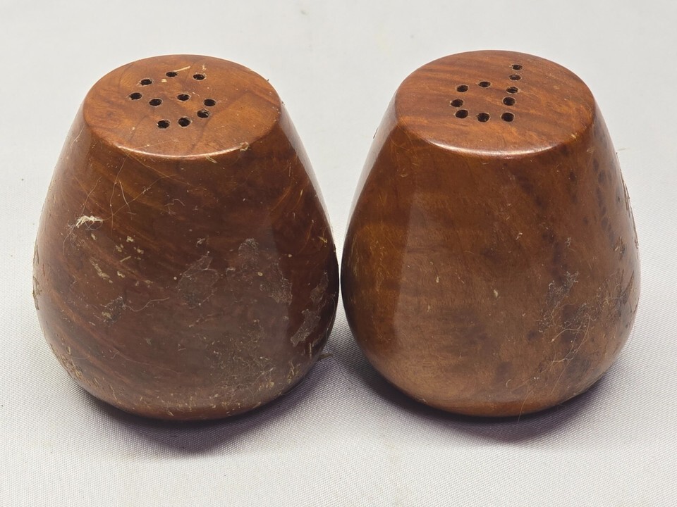 Vintage Little Brown Wooden Egg Salt & Pepper Shaker Set - Farmhouse Country