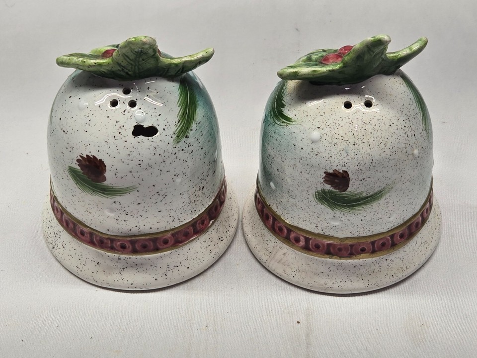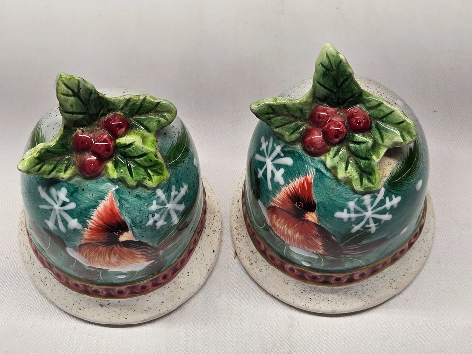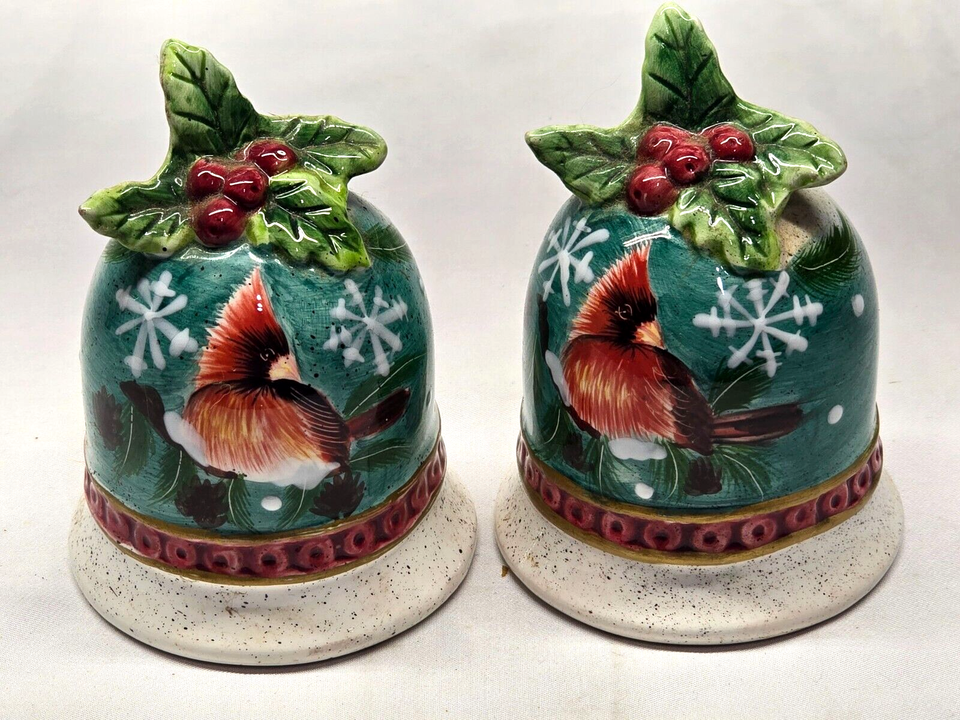 Vintage Cardinal Salt & Pepper Shaker Set - Bell Birds Christmas Holidays Holly