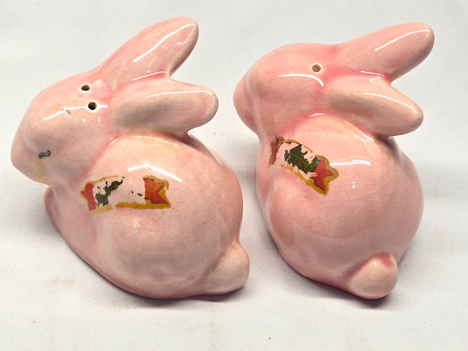 Vintage Pink Bunnies Salt & Pepper Shaker Set - Farmhouse Country Rustic 1940s