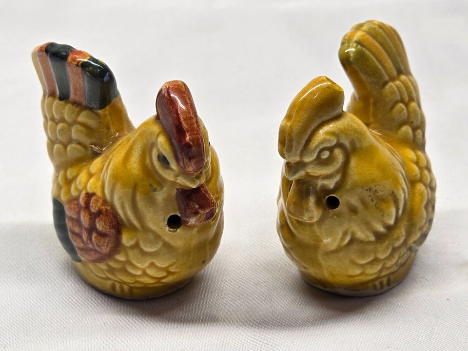 Vintage Yellow Rooster Hen Salt & Pepper Shaker Set - Farmhouse Country Rustic