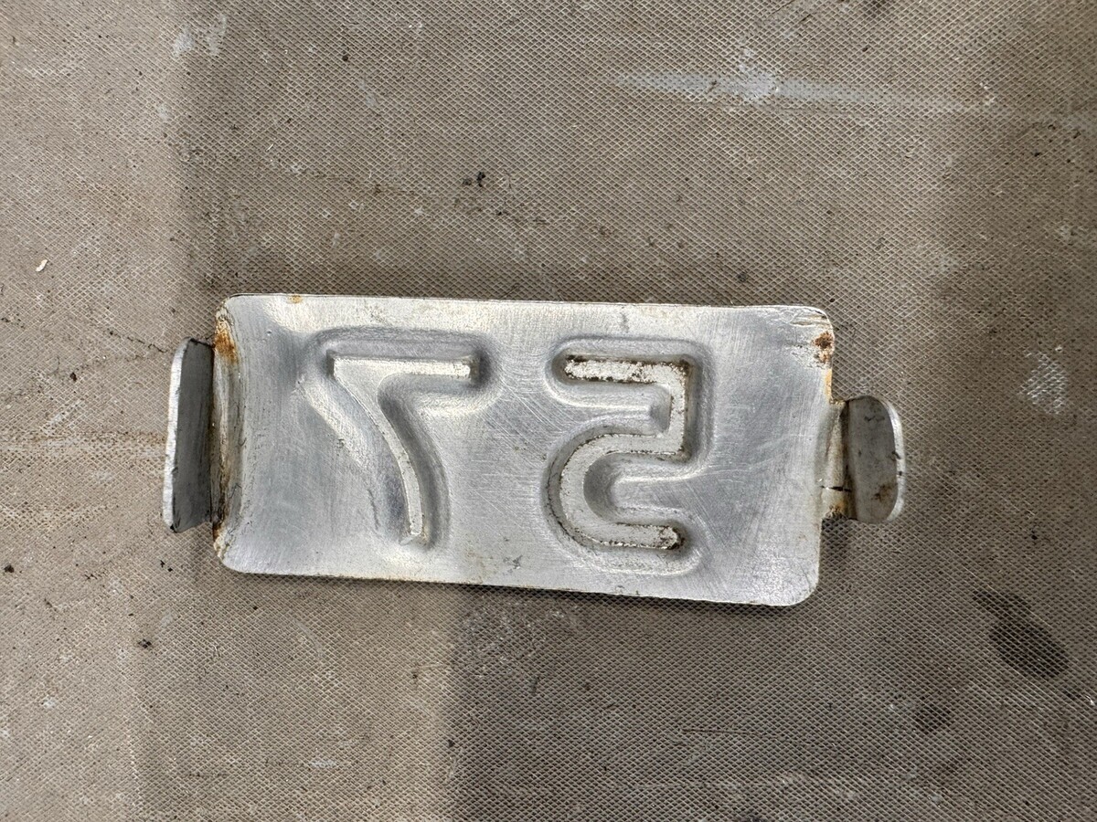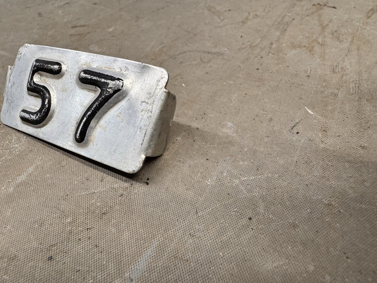 Original 1957 license plate metal renewal tag