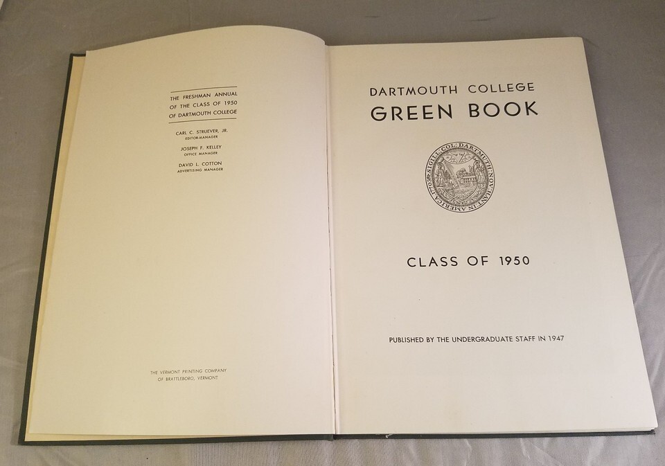 Zum Verkauf steht eine Kopie des Dartmouth College Grünes Buch für das Jahrbuch der Klasse 1950. Das Buch ist wirklich in einem tollen Zustand.