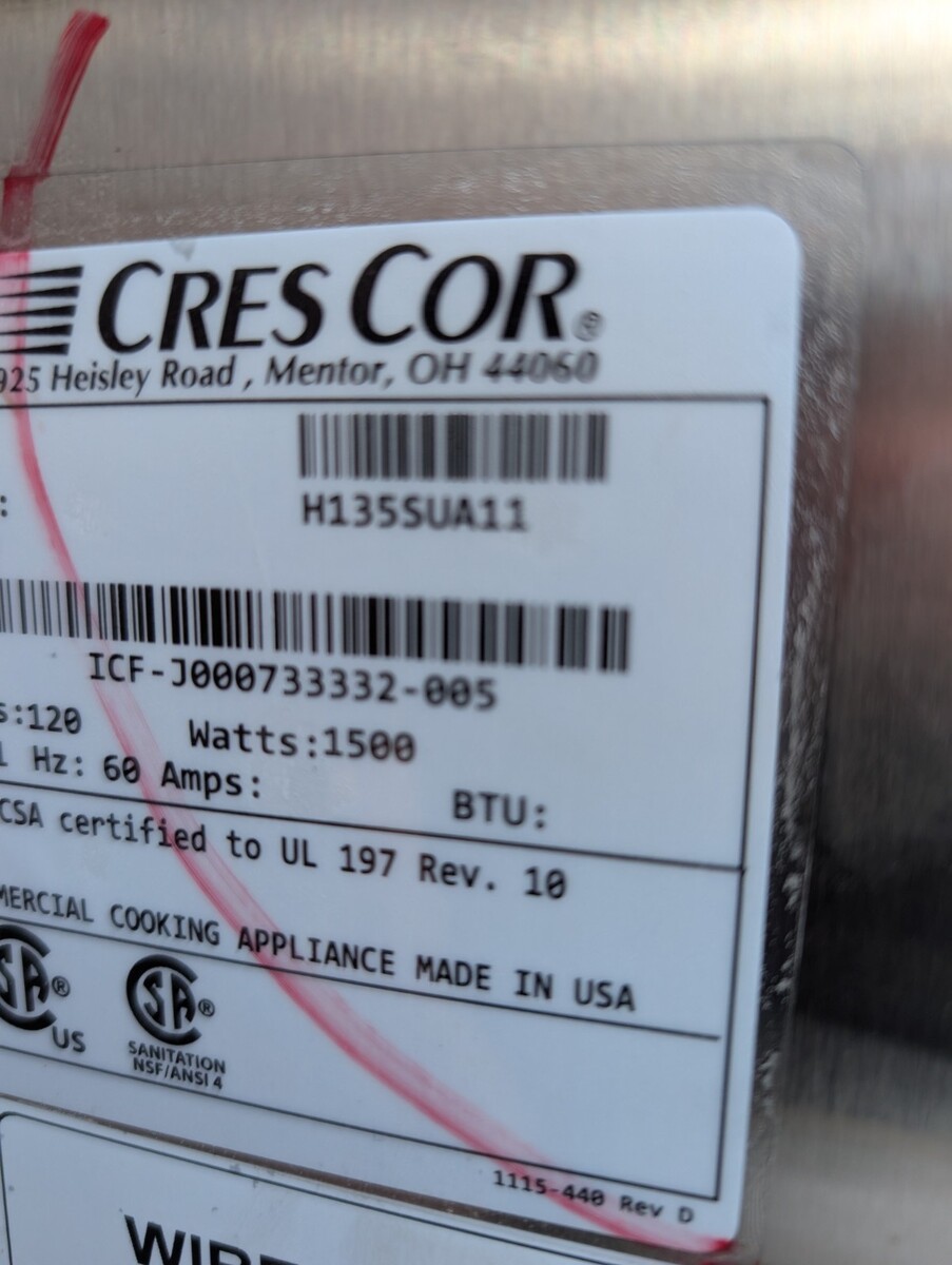 New Cres Cor heated Holding Warming Cabinet Scratch and Dent H135UA11