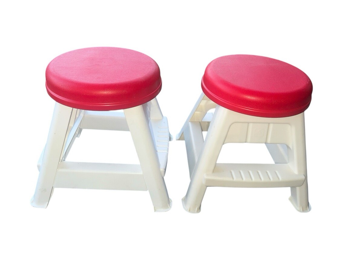 Pair Set Step 2 Red and White Stool Little Tikes Child Size Desk Kitchen Table. Condition is Used. Shipped with USPS Ground Advantage.