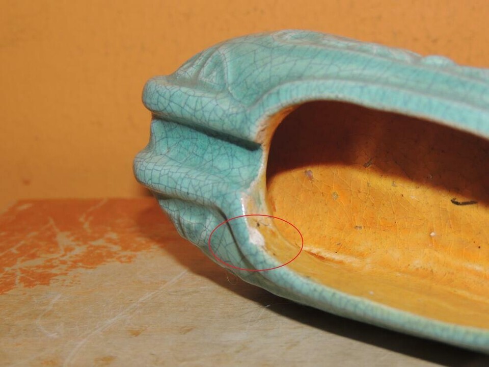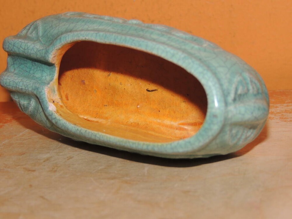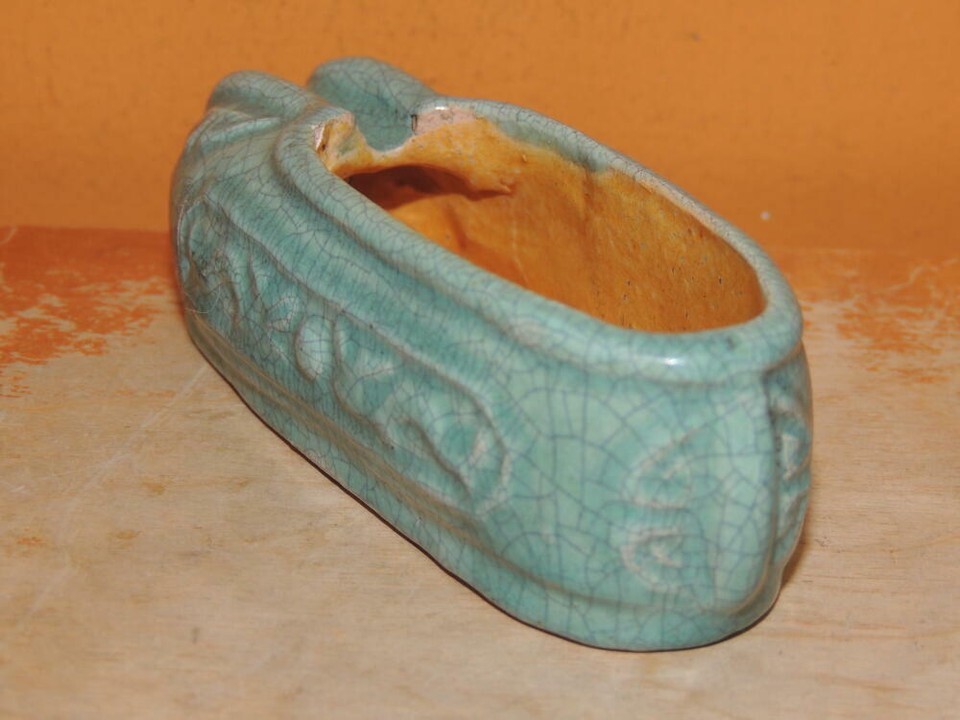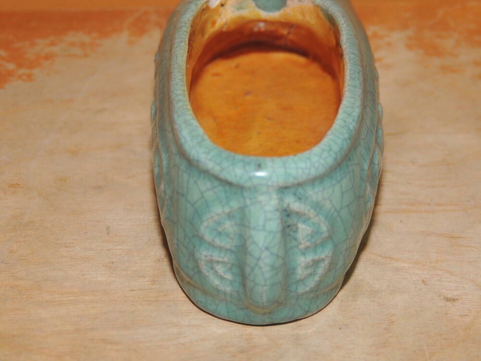 Chinese Mud Shoe 4"+ Teal overglaze dragon pearl Mudman mark China Antique c1910