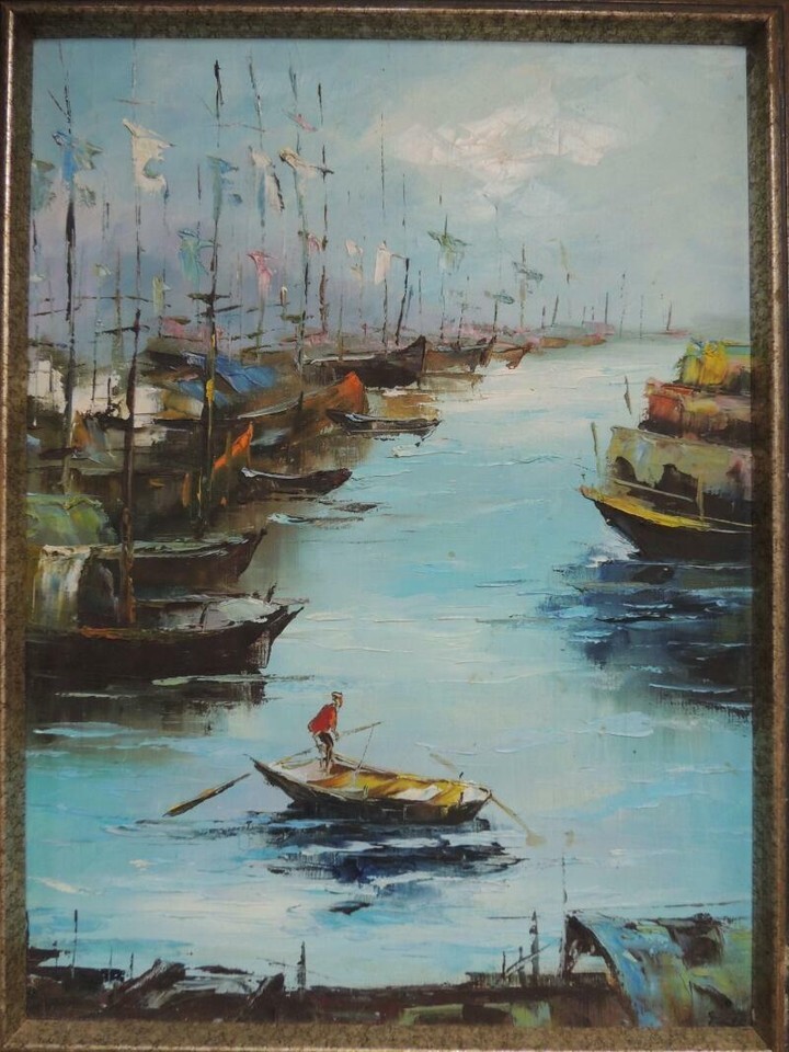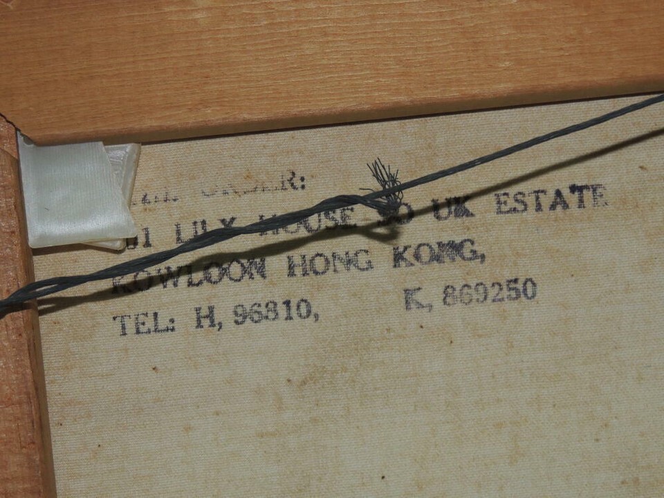ORIGINAL OIL PAINTING, SIGNED "PETE". THE REVERSE OF THE CANVAS IS STAMPED "401 LILY HOUSE SO UK ESTATE" "KOWLOON HONG KONG," "TEL: H, 96810, K, 869250". THE FRAME WILL BE INCLUDED FOR STABILITY, BUT IS NOT PART OF THE PURCHASE AND NOT GUARANTEED. PLEASE LOOK AT THE PICTURES, AS I AM NOT AN EXPERT.