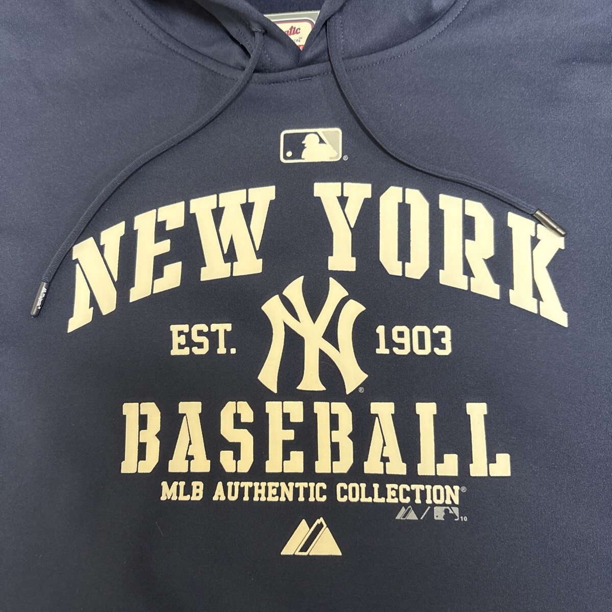 New York Yankees Hoodie Mens L Blue MLB Baseball Therma Base Pullover Sweatshirt