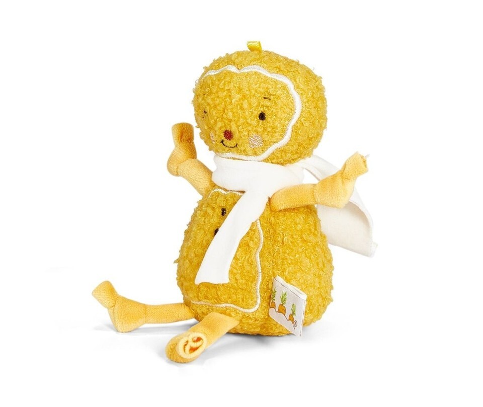 Ginger the Gingerbread Friend, a roly poly tiny-sized stuffed animal plush! With a textured tan body, a cozy white scarf, and charming embroidered details, Ginger is the perfect pint-sized companion for festive fun. The delightful gingerbread buddy is ready to bring sweet cheer to your holiday celebrations!