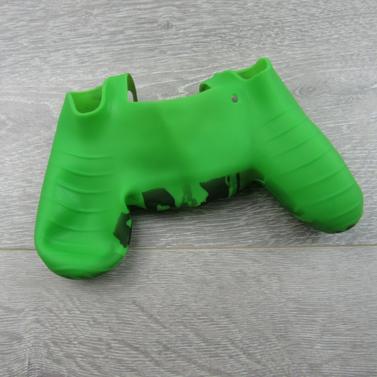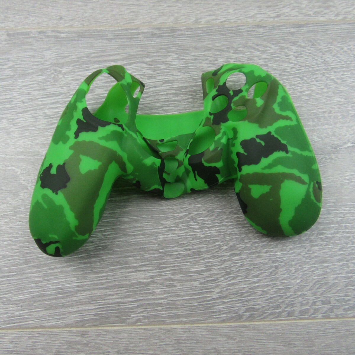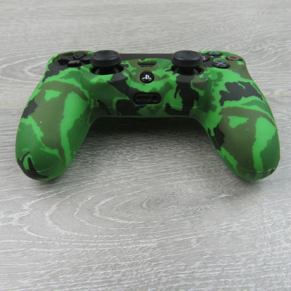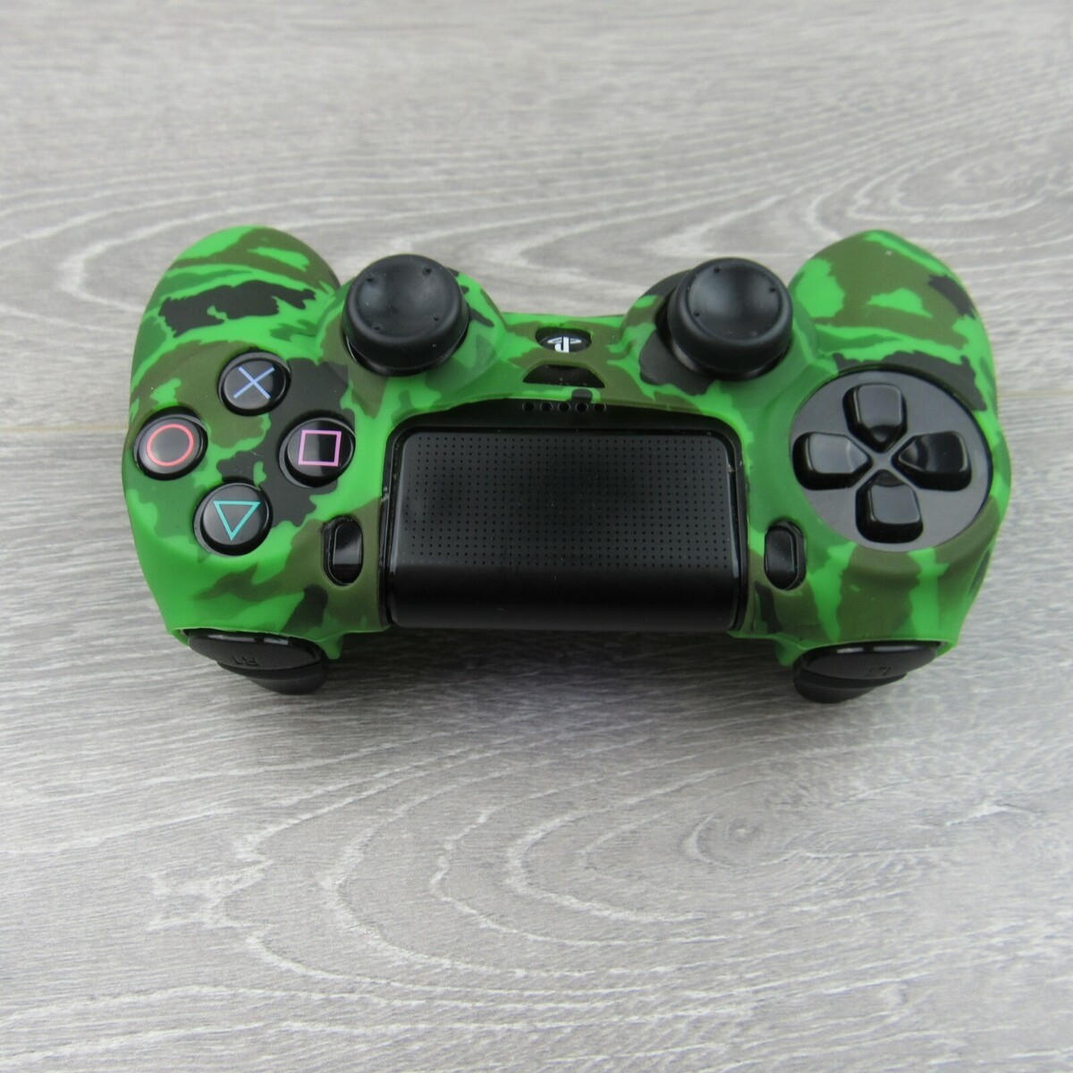 Silicone Grip Green Camo Non Slip + (8) Thumb Grip Caps For PS4 Controller