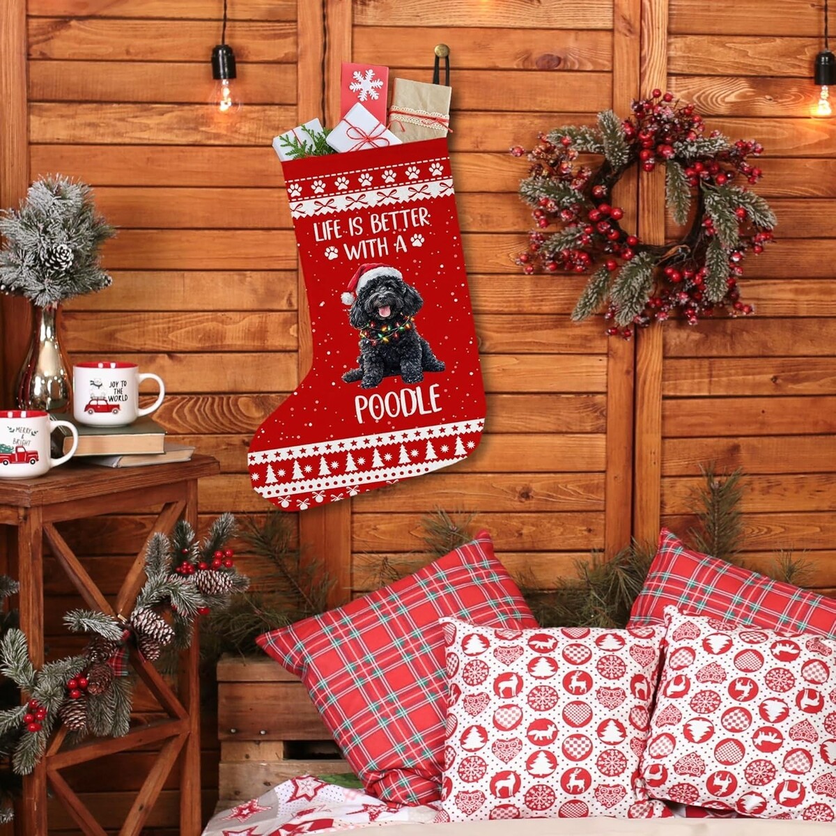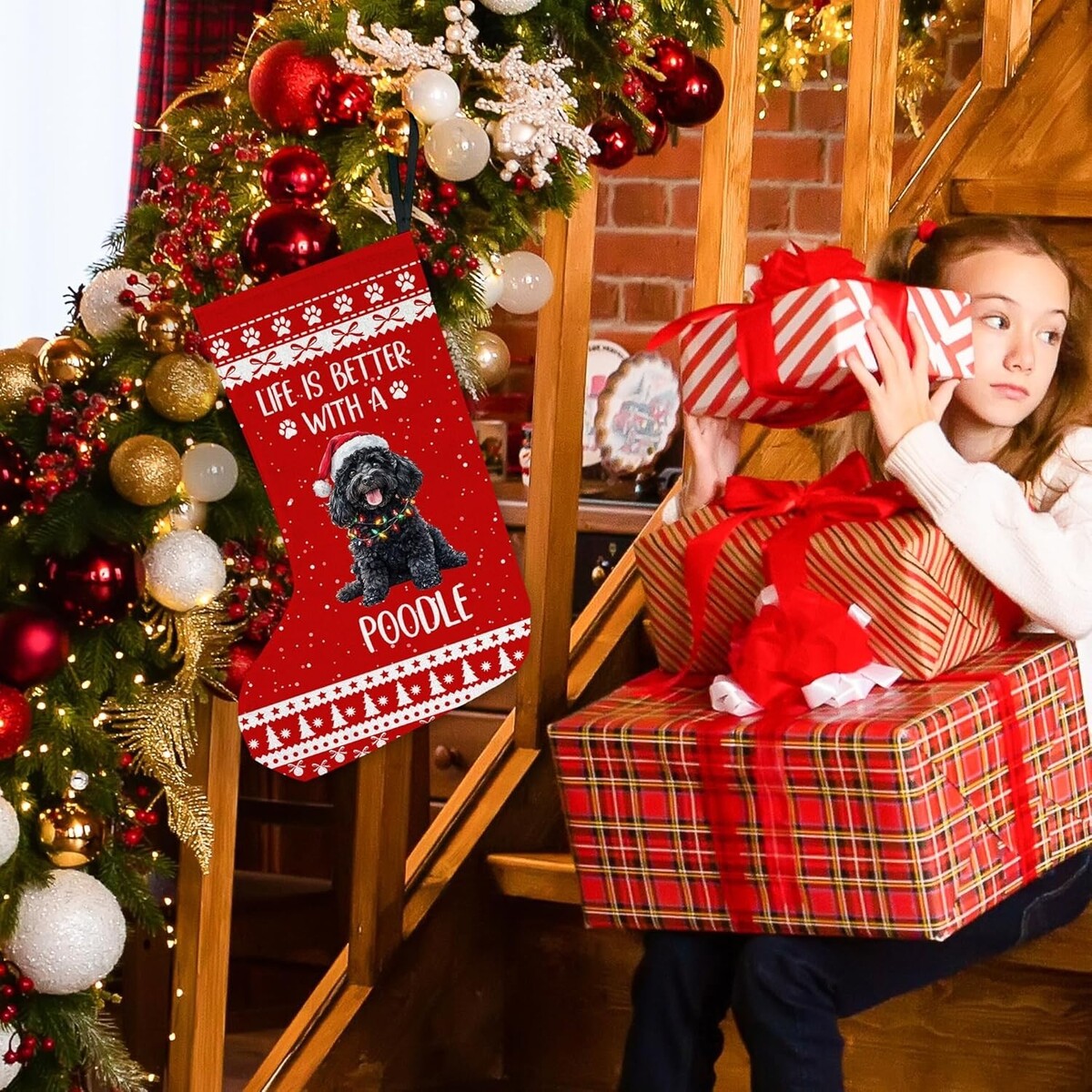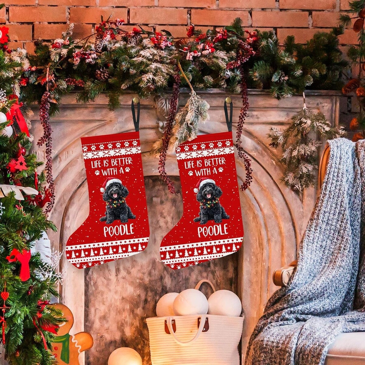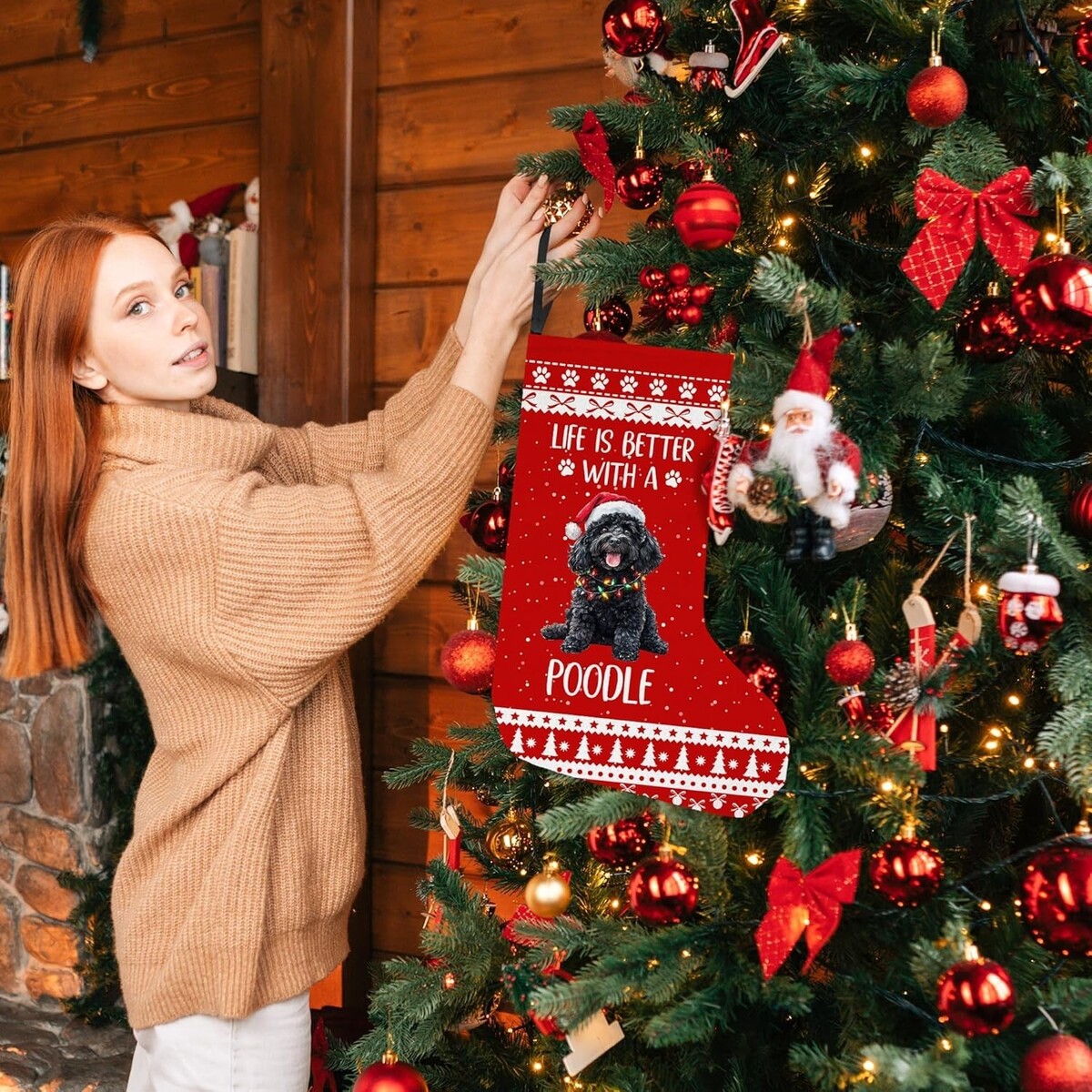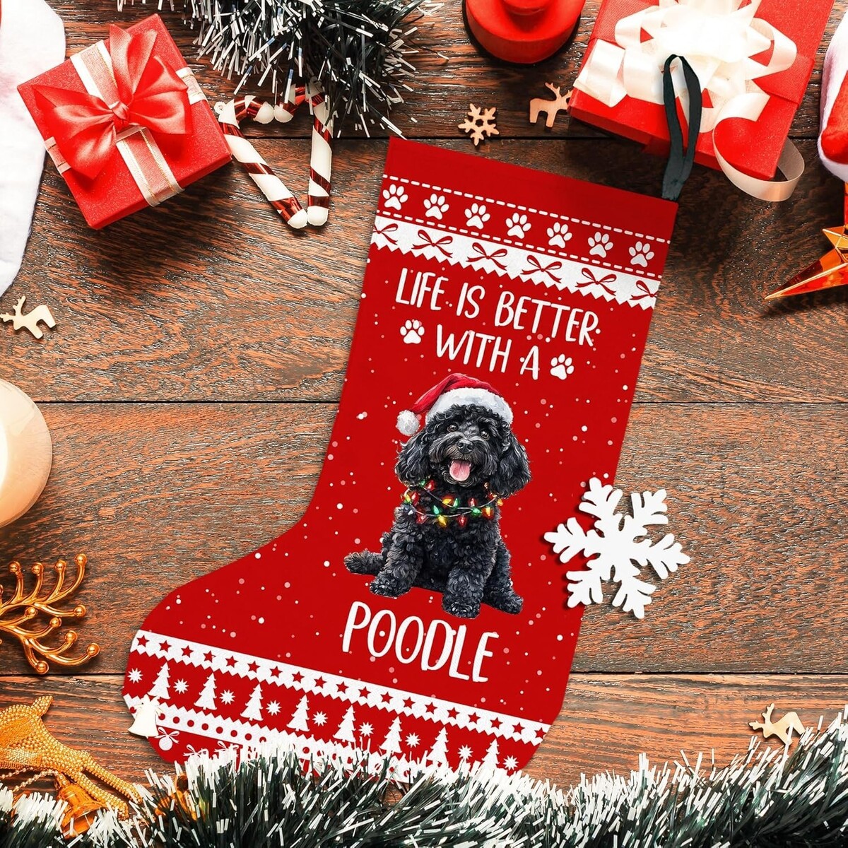 Black Poodle Gifts Dog Christmas Stocking, Black PoodleDog Christmas