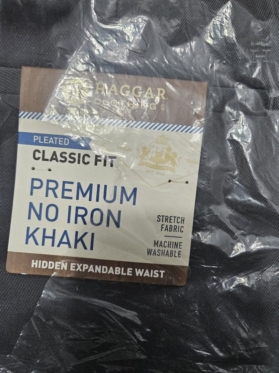 Haggar Men's Big Tall Premium No Iron Khaki Classic-Fit Pleated Hidden Expandable Waistband Pants