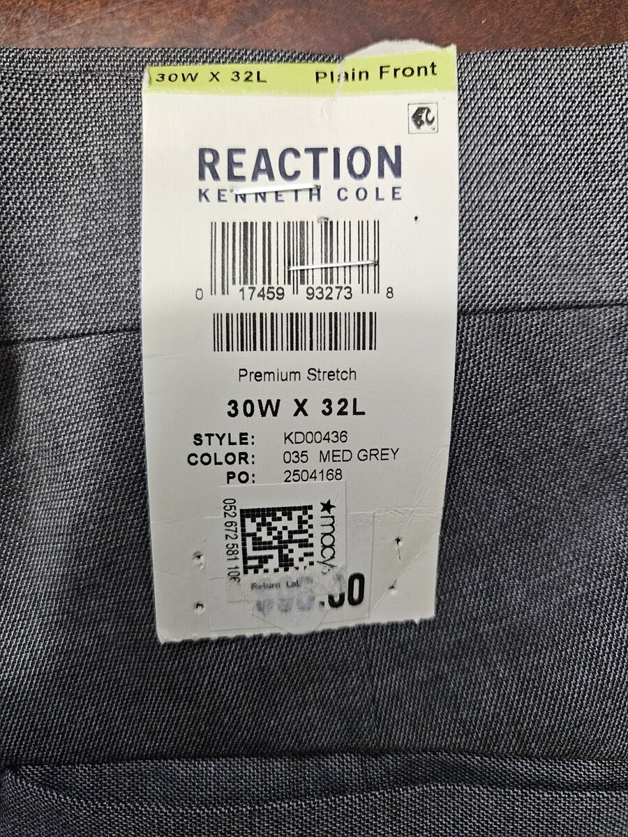 Kenneth Cole Reaction Men's Slim-Fit Stretch Dress Pants Grey 30W x 32L NWT