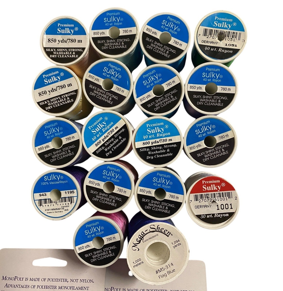 Sulky Thread Rayon Lot of 17 with Extra Spools Various Colors Embroidery Sewing