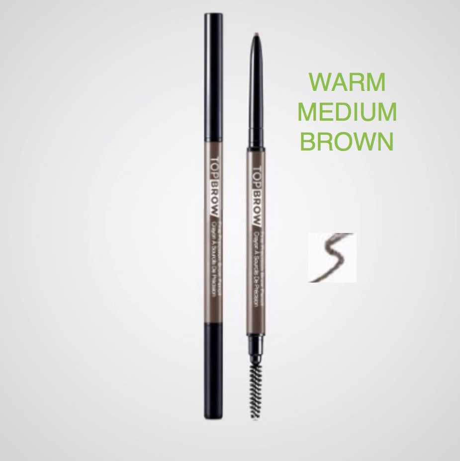 Dual-ended brow pencil with ultra tip on one side and includes spool on the other