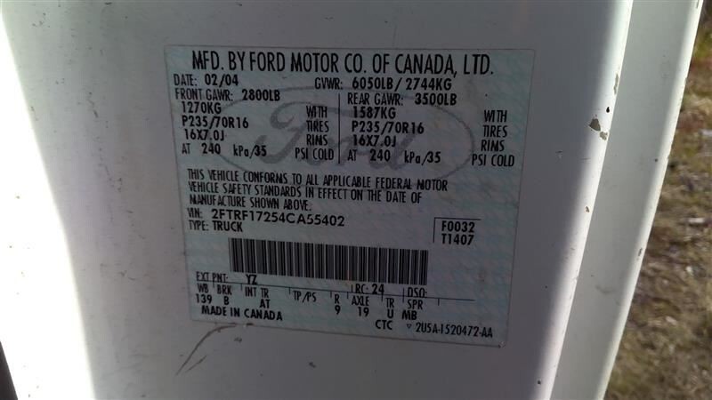 FORD F150 PICKUP 04 Heritage, Regular Cab, XL, w/o roof console; L.