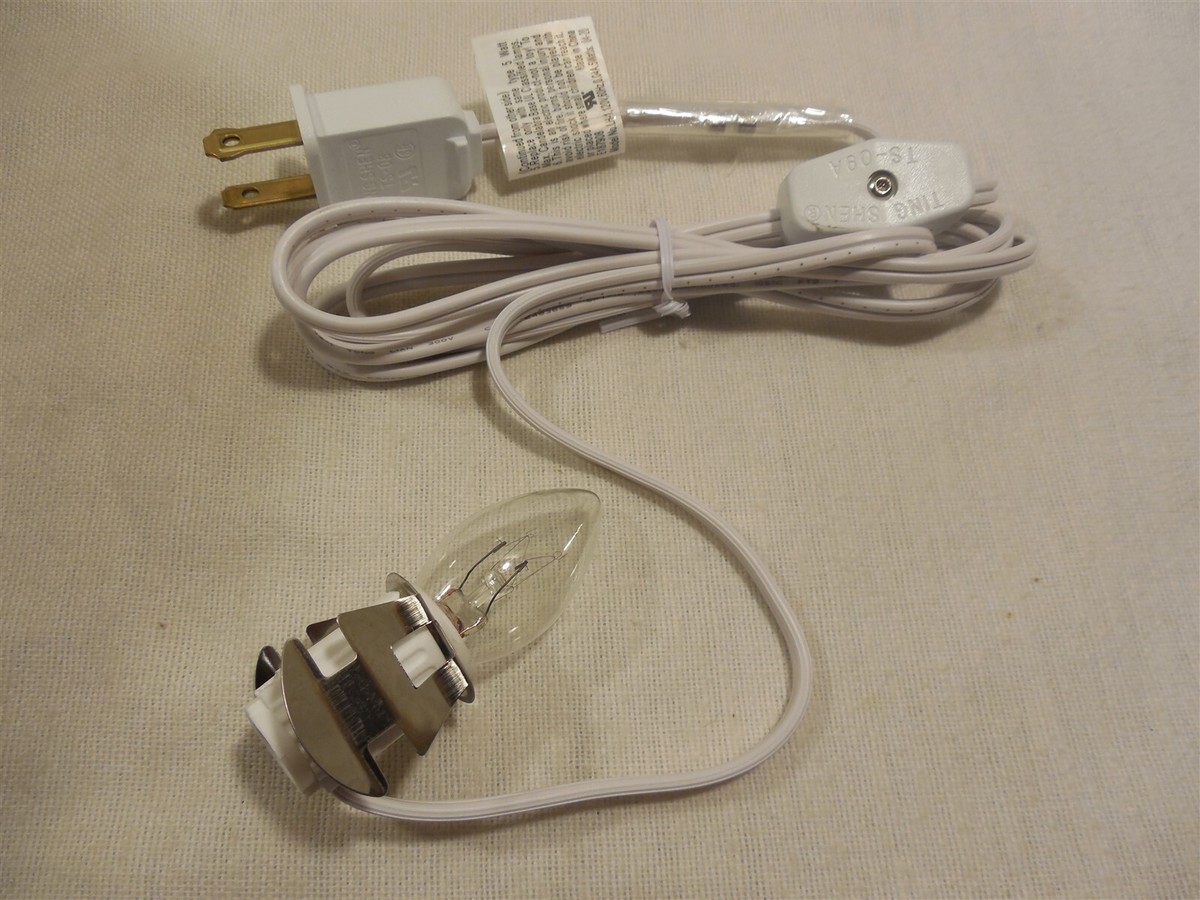 A single new in sealed package replacement light cord with bulb and switch. This cord is for indoor use only. Replacement cord for blow mold lights, Christmas village pieces, ceramic figures, etc.