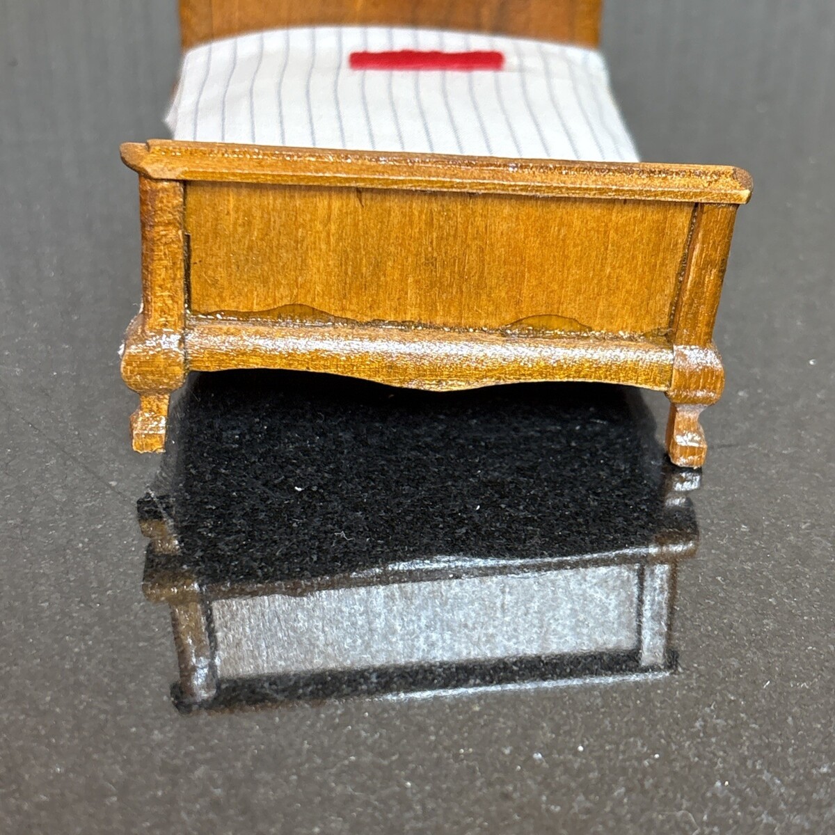 Dollhouse Bed and Mattress Wooden Furniture Vintage Regency Oak Wood Miniature