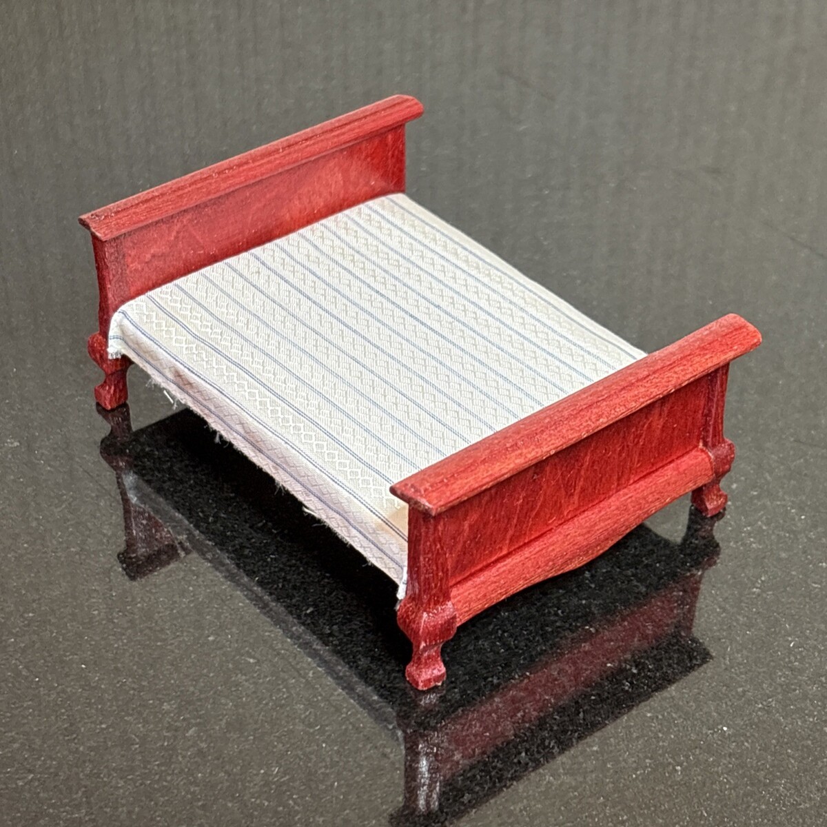 Dollhouse Bed and Mattress Wooden Furniture Vintage Regency Rosewood Miniature
