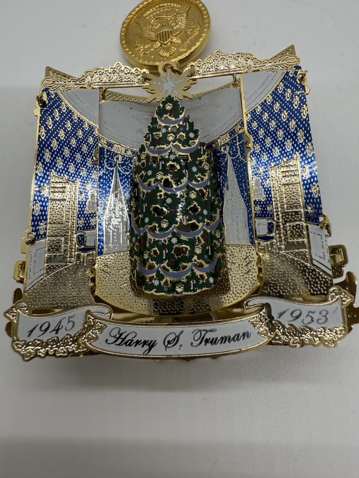 The White House Historical Association Christmas Ornament 2018 featuring Harry S. Truman is a collectible metal ornament from the Whitehouse Christmas Collection. It is a special piece that commemorates a specific year and president of the United States, making it a unique and valuable addition to any holiday ornament collection.