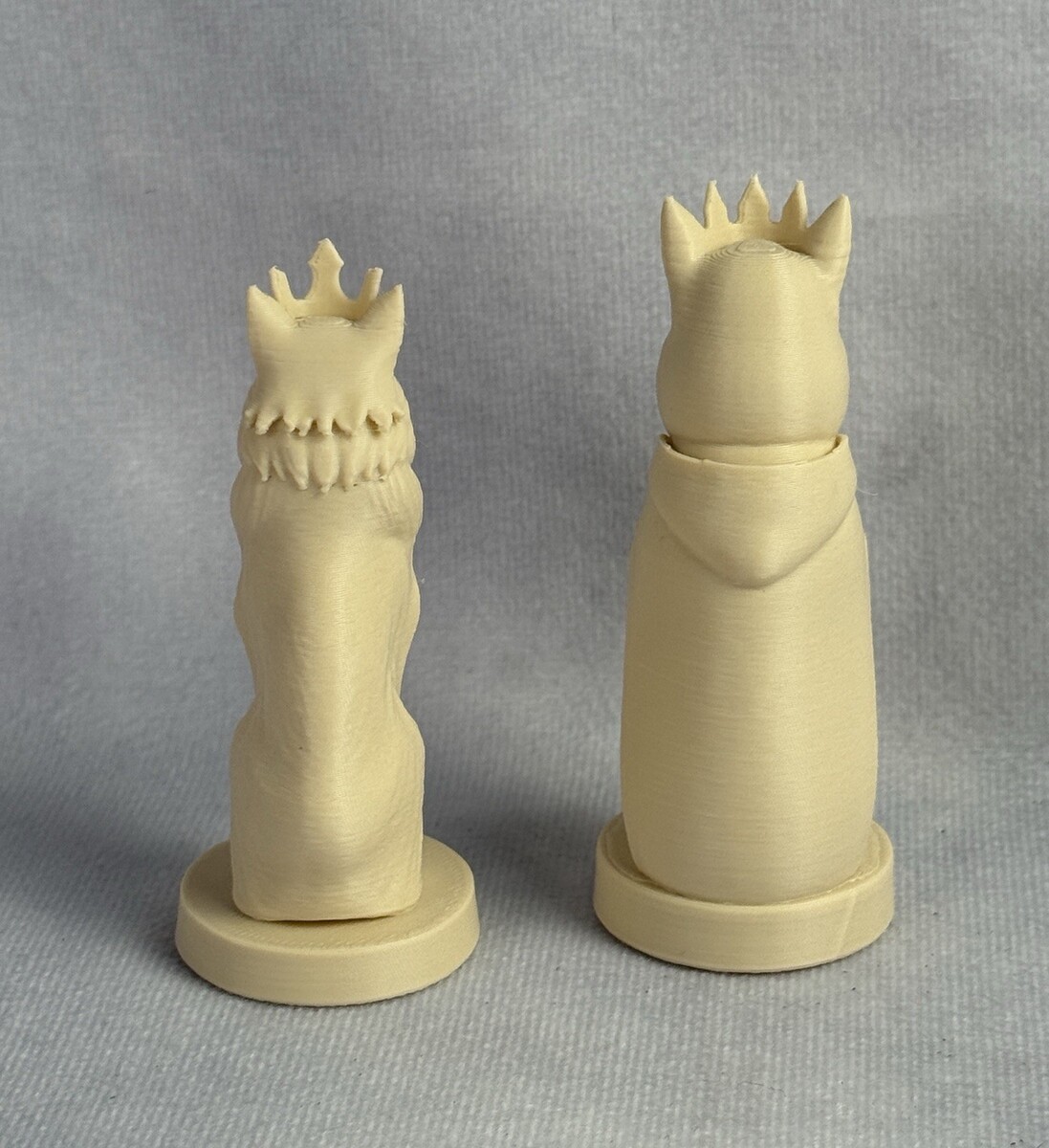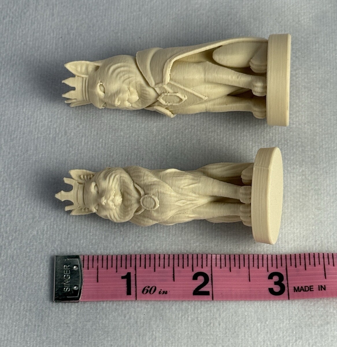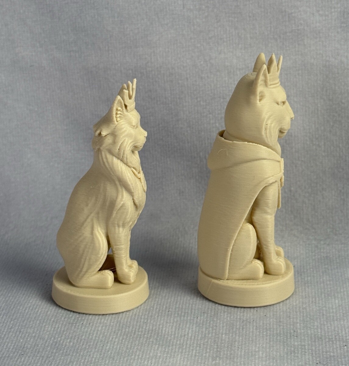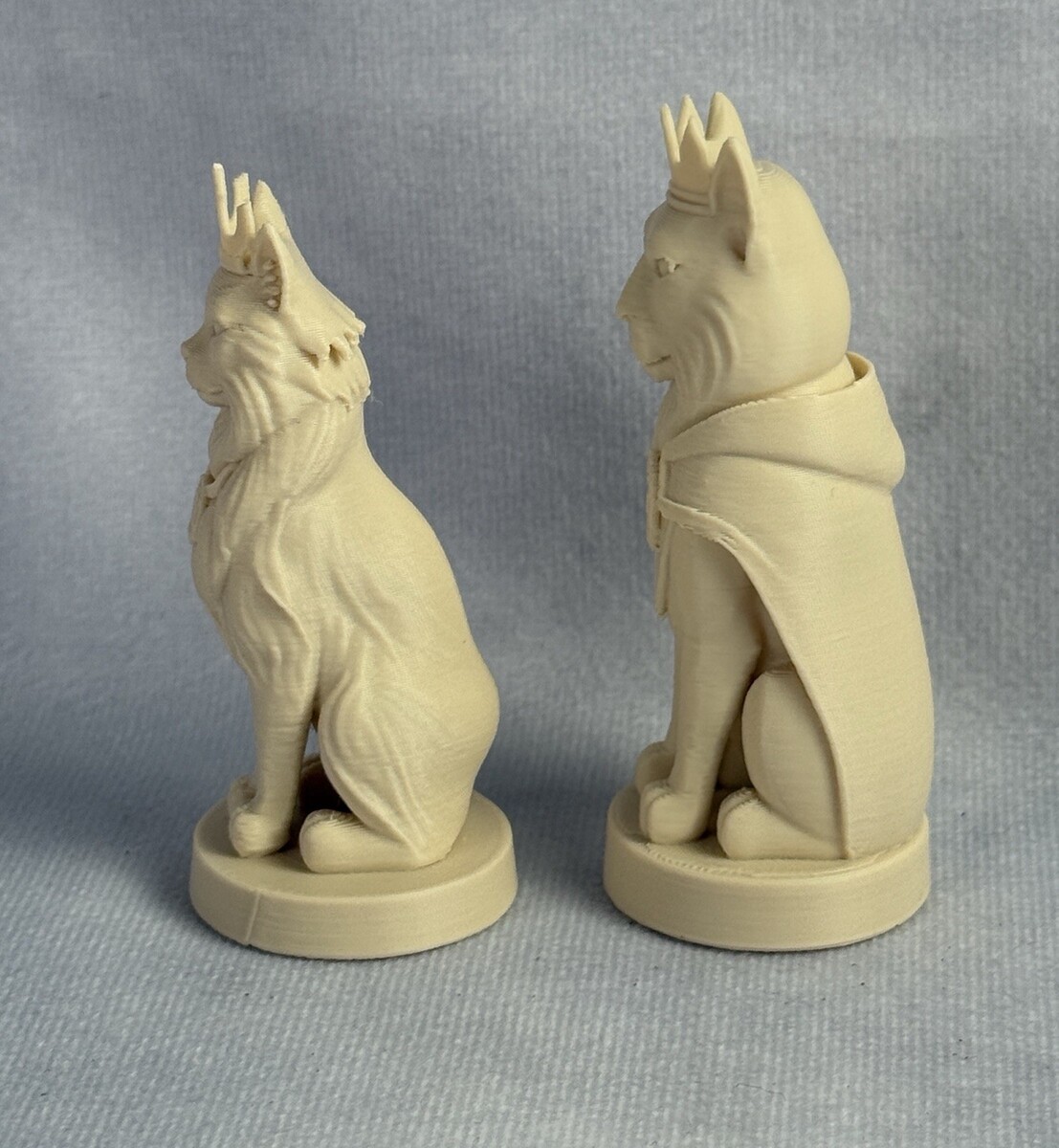 Estate sale find, lot of two cat chess pieces, plastic, probably 3D printed, as pictured, minor lines, marks, and rough spots, condition as pictured, ships within three business days.