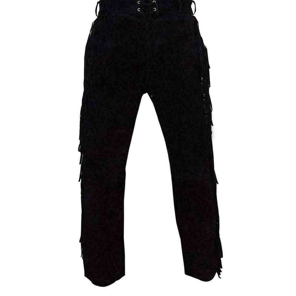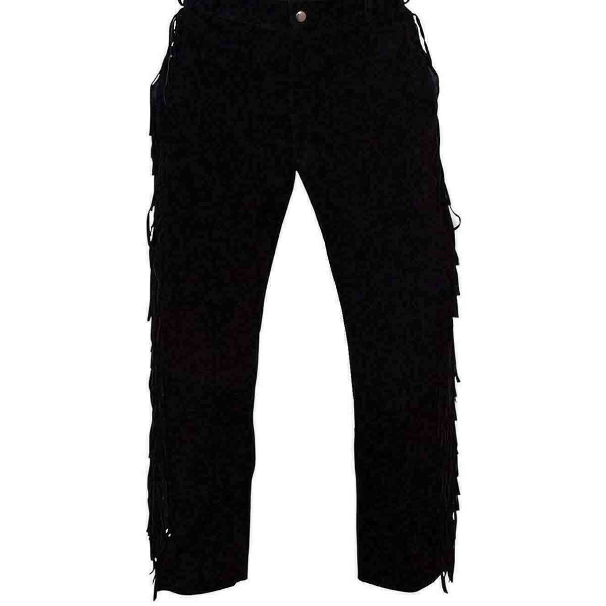 Elevate your wardrobe with our Native Black Leather Pants, where style meets comfort. Made from premium black suede leather, these pants showcase sleek fringe details along the sides for a touch of sophistication. Ideal for making a bold statement at festivals, casual outings, or themed events, they offer both versatility and standout style. The high-quality suede ensures lasting durability and a luxurious feel, while the unique fringe design adds a modern edge. Step into any occasion with confidence and flair.