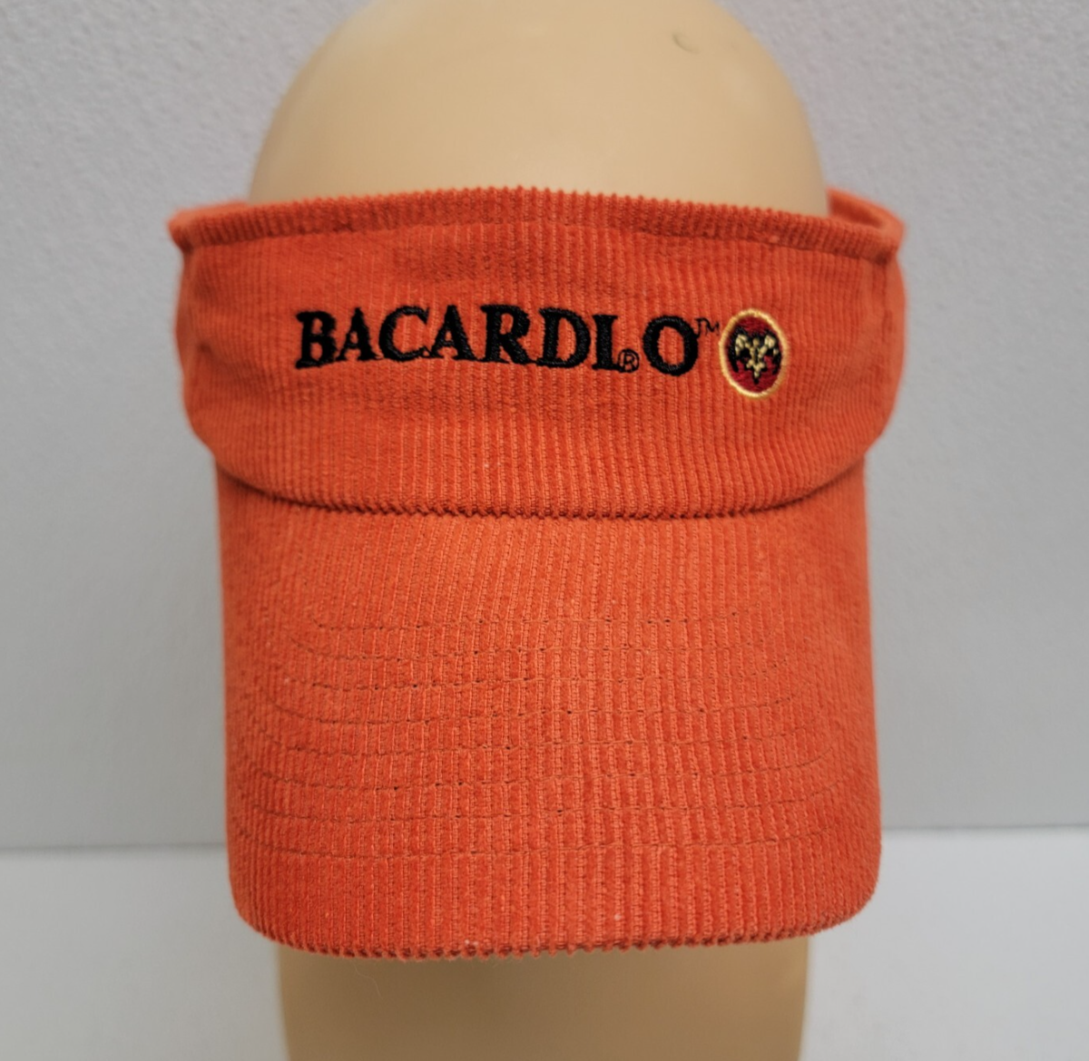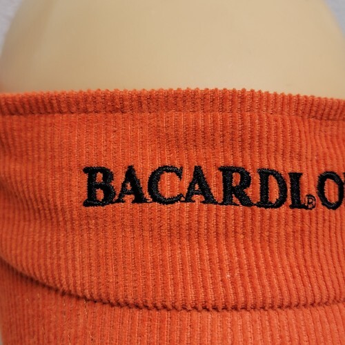 Bacardi O Rum Sun Visor Hat Orange Corduroy Strapback Adjustable Embroidered. Images show actual item that will ship.