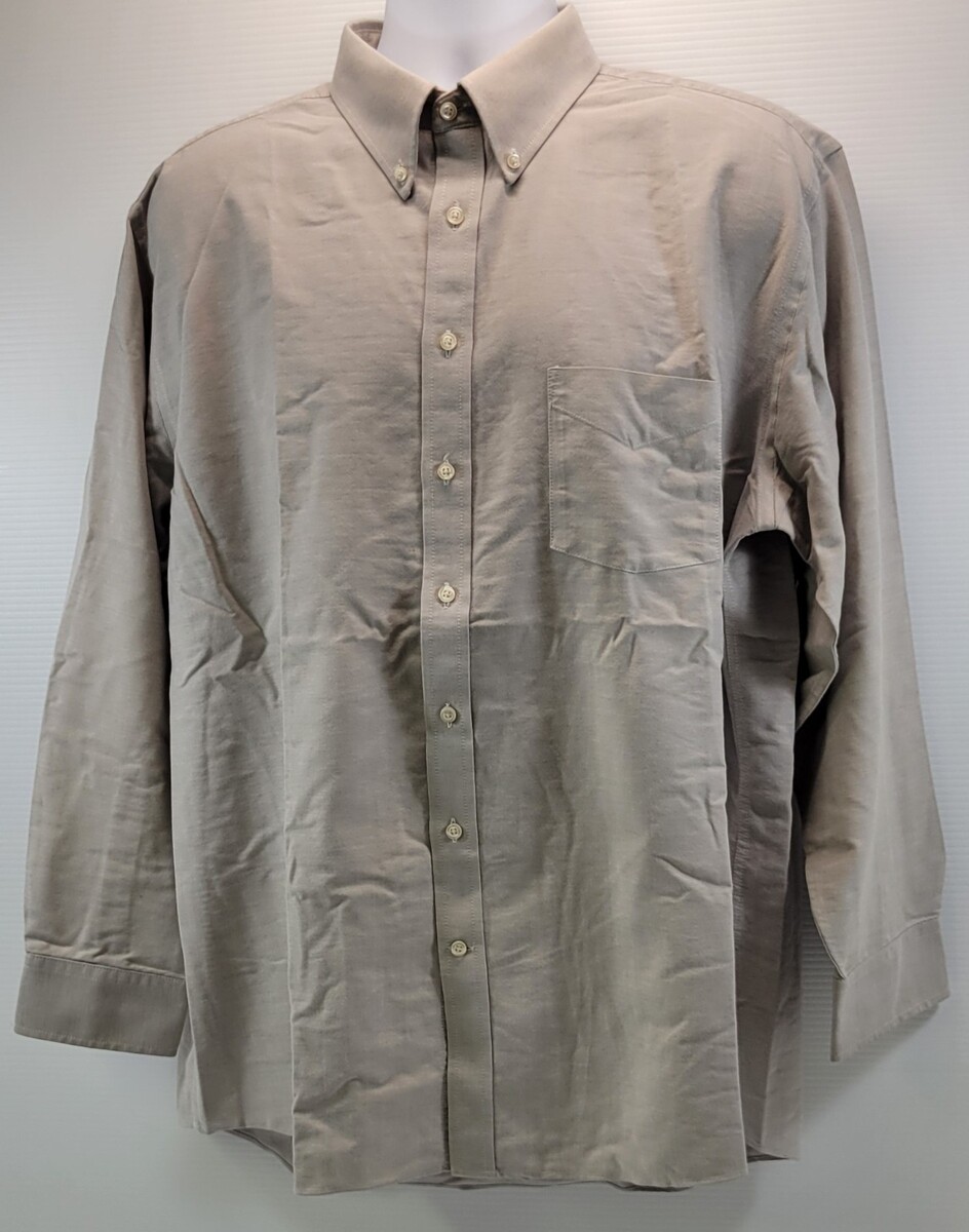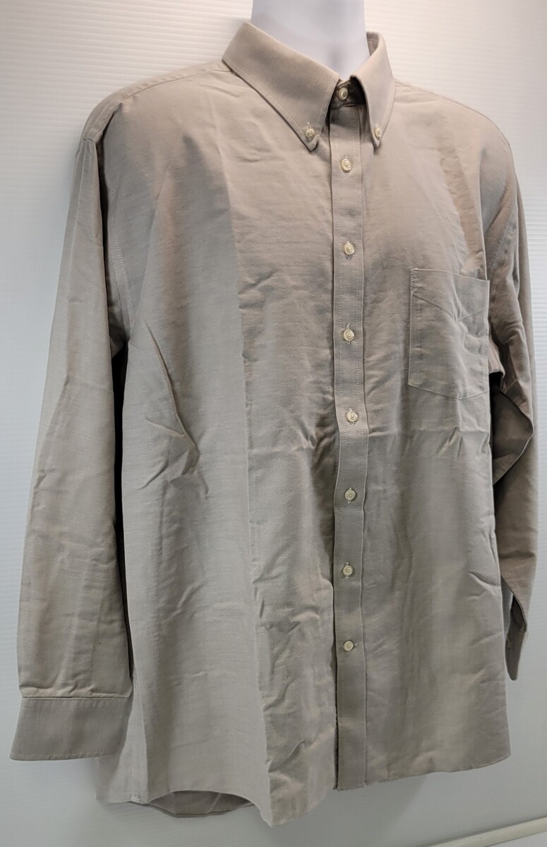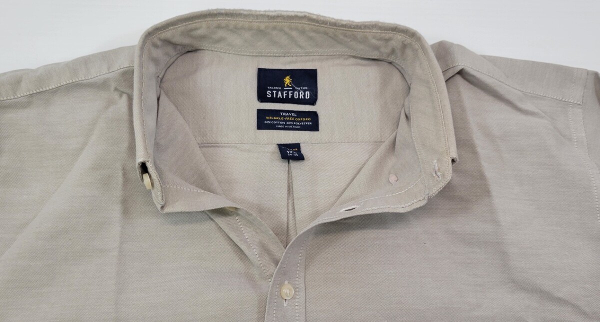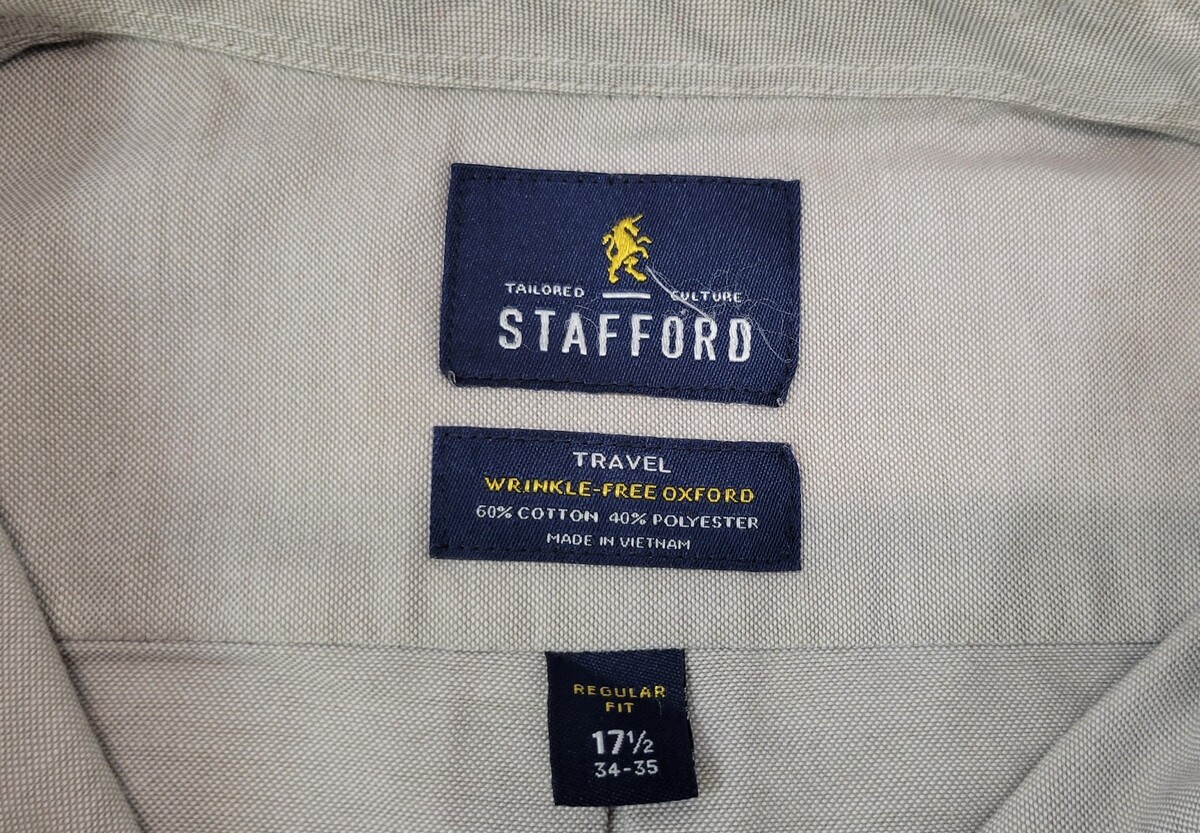 II) Stafford Men Travel Oxford Gray Regular Button Down Collar Shirt 17.5 34/35