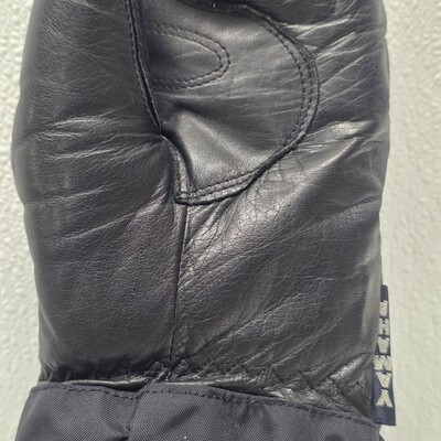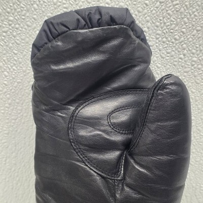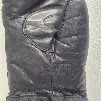 Yamaha Vintage Adult Nylon Leather Black Mittens. Images show actual item that will ship.