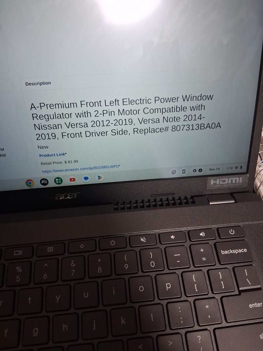Power Window Regulator with Motor Front Driver for Nissan Versa 12-19 Versa Note