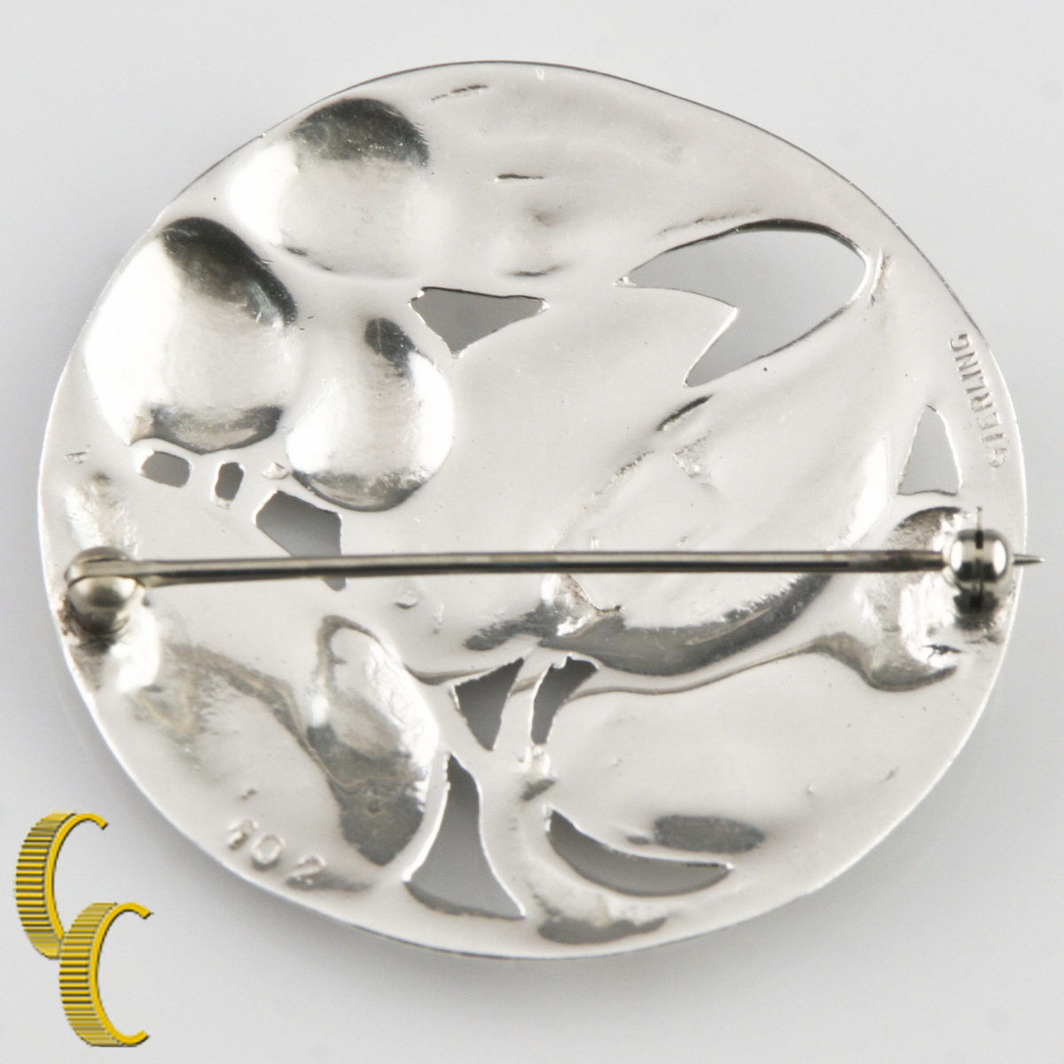 Sterling Silver Round Repousse Brooch w/ Leaves and Berries