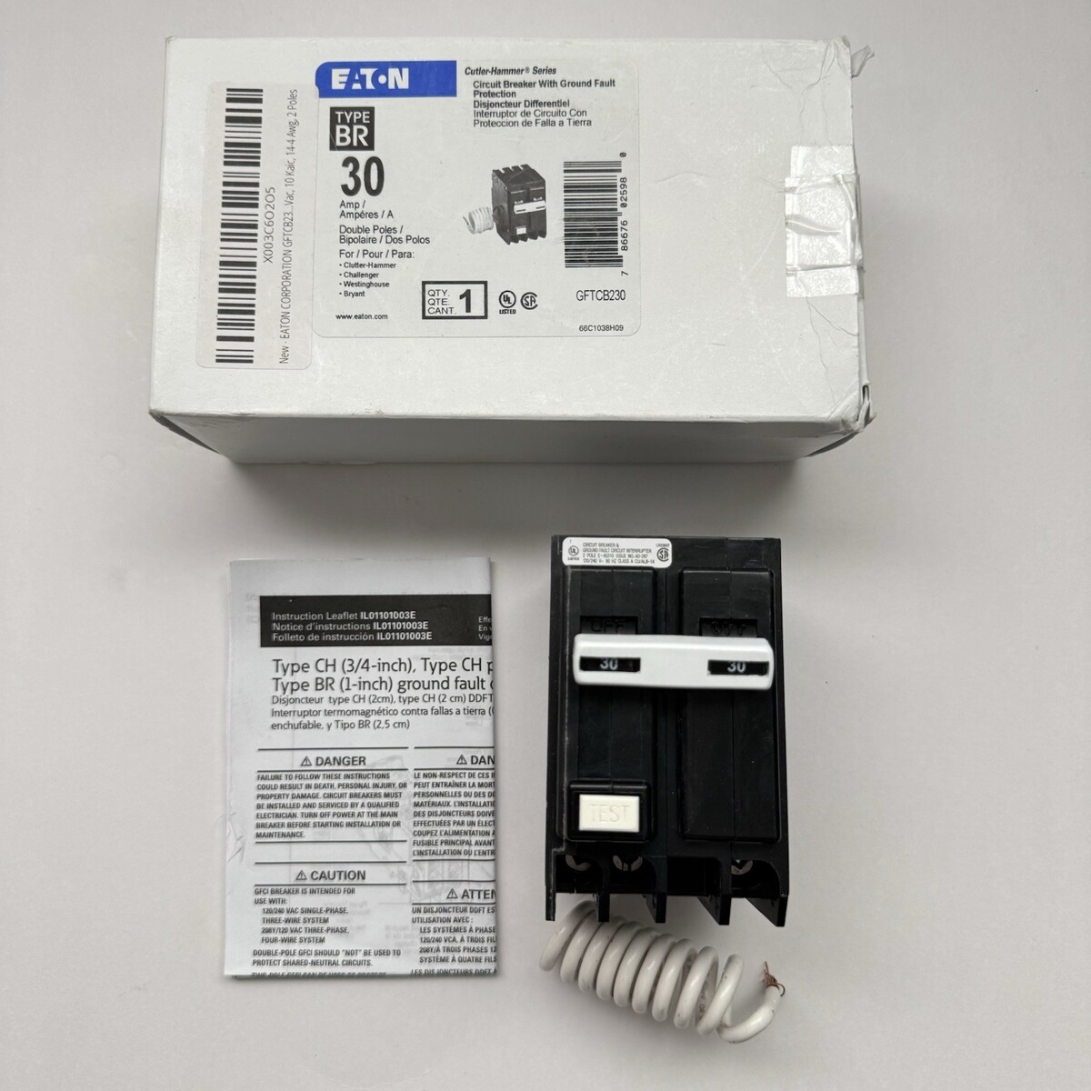 Eaton BR GFTCB230 30A 120/240V GFCI Pigtail Neutral Breaker