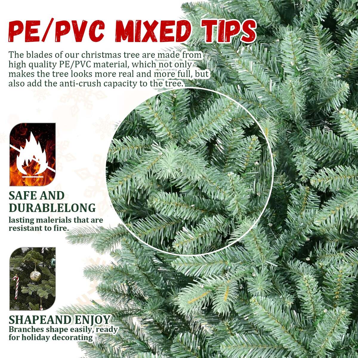 Lush Realistic Appearance with 4368 Tips - Made from 4368 high-quality PE+PVC tips, this tree delivers a dense, full look with a natural texture?perfect for creating a festive and elegant display.