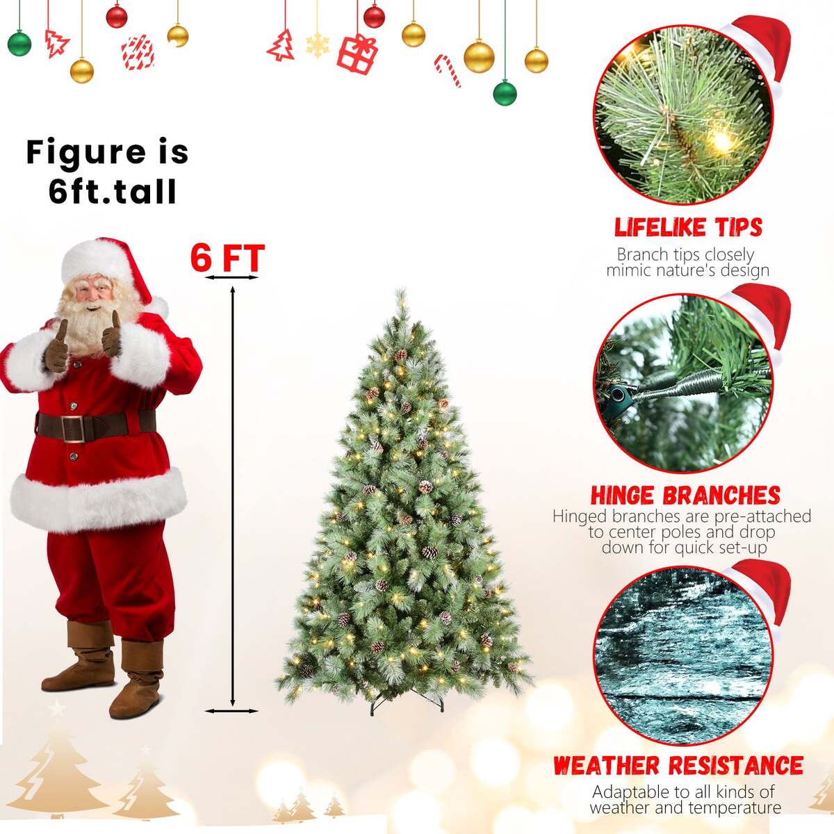 9FT Pre-Lit Christmas Tree: 700 LED Warm White Lights & Pine Cones