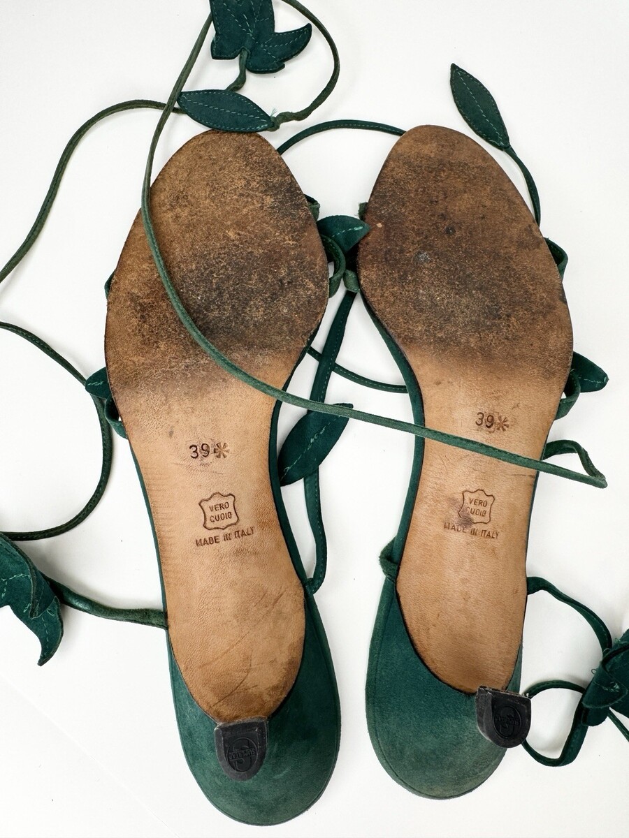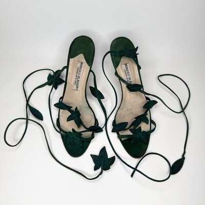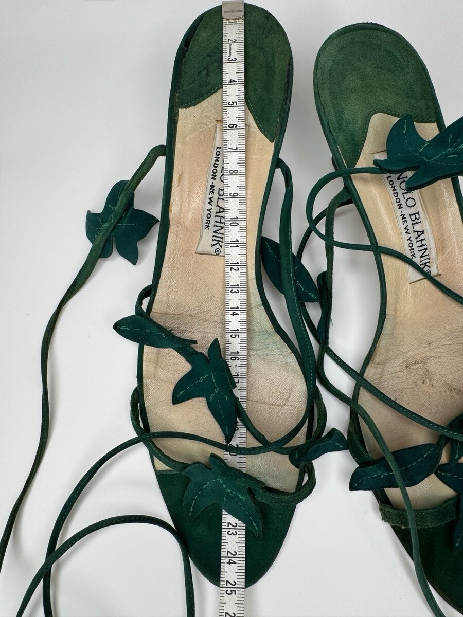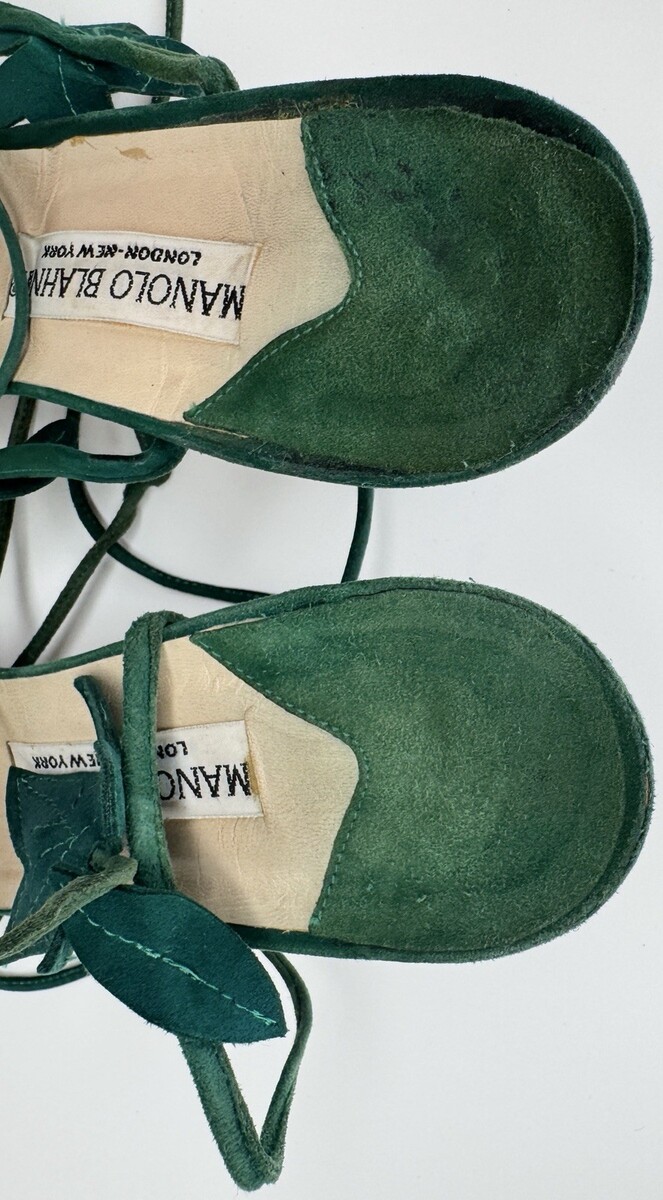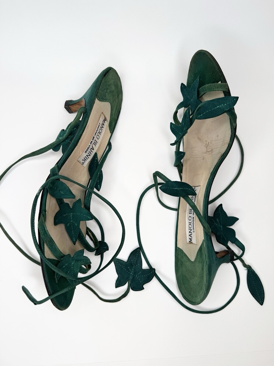 Vintage Manolo Blahnik Size 39 Kitten Heels Ivy Leaf Green Suede