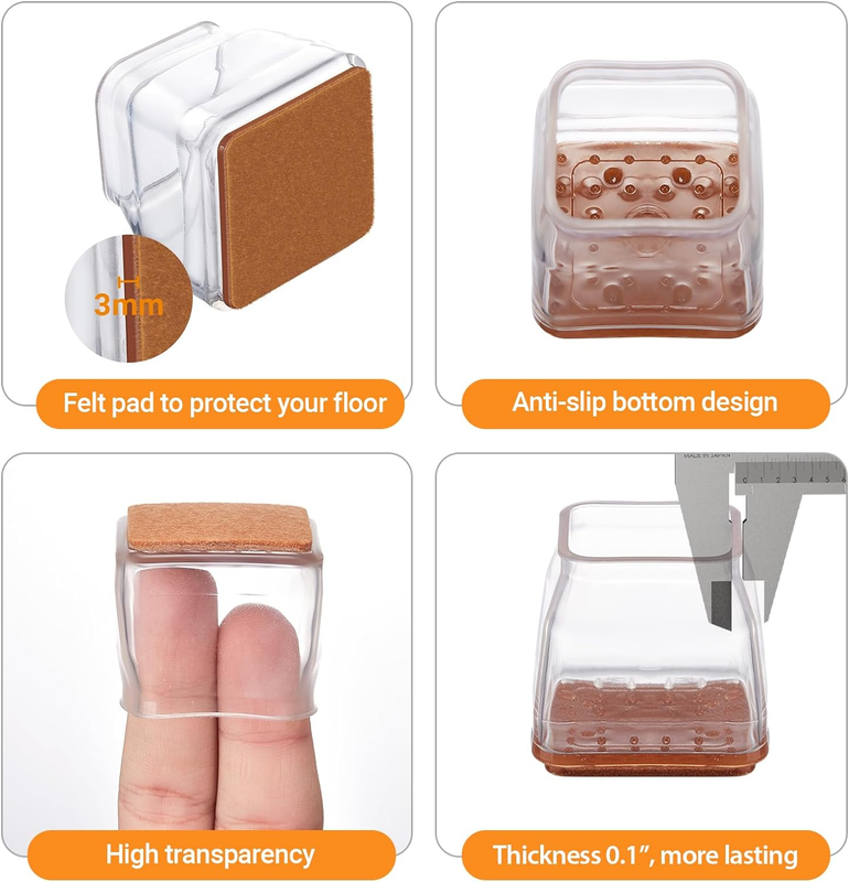 ?High transparency.The transparency of these chair leg protectors are more clearer, let your chair leg shows its original color. So you will easily ignore the protective cover?s existence.