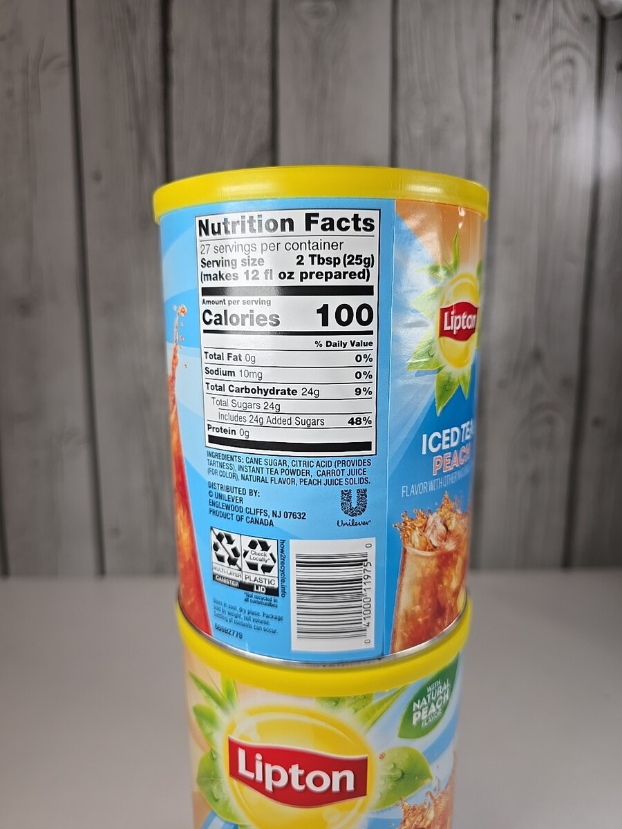 LOT OF 2, Lipton Peach Iced Tea Mix Powder Makes 10 Quarts